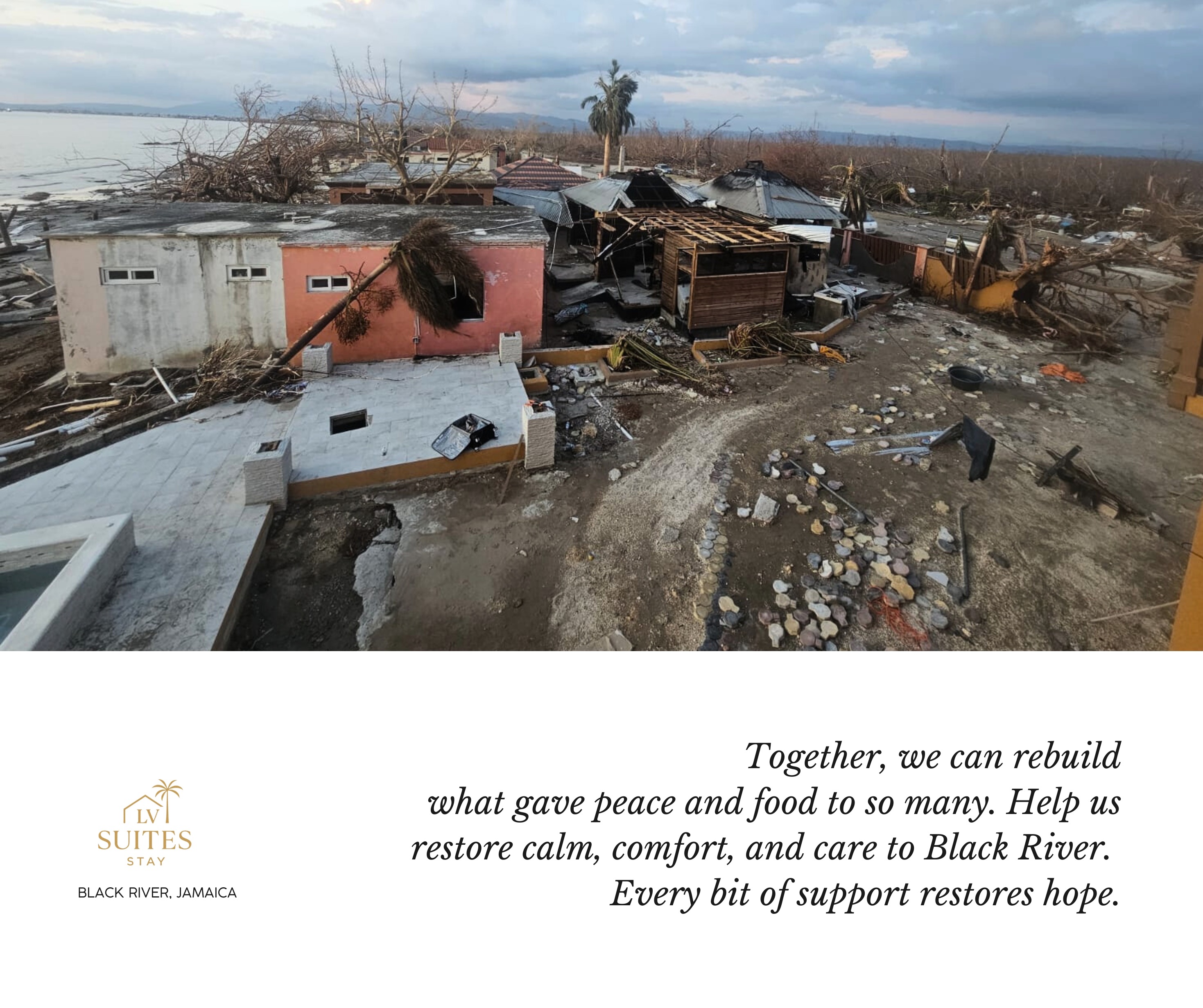 Our beloved town of Black River, St. Elizabeth, Jamaica, has been devastated by Hurricane Melissa. Our family businesses, Las Vegas Café Ja and LV Suites, were destroyed, along with our home and many, if not all, homes in our community. We’re raising funds to provide relief supplies, help our neighbors get back on their feet and rebuild.