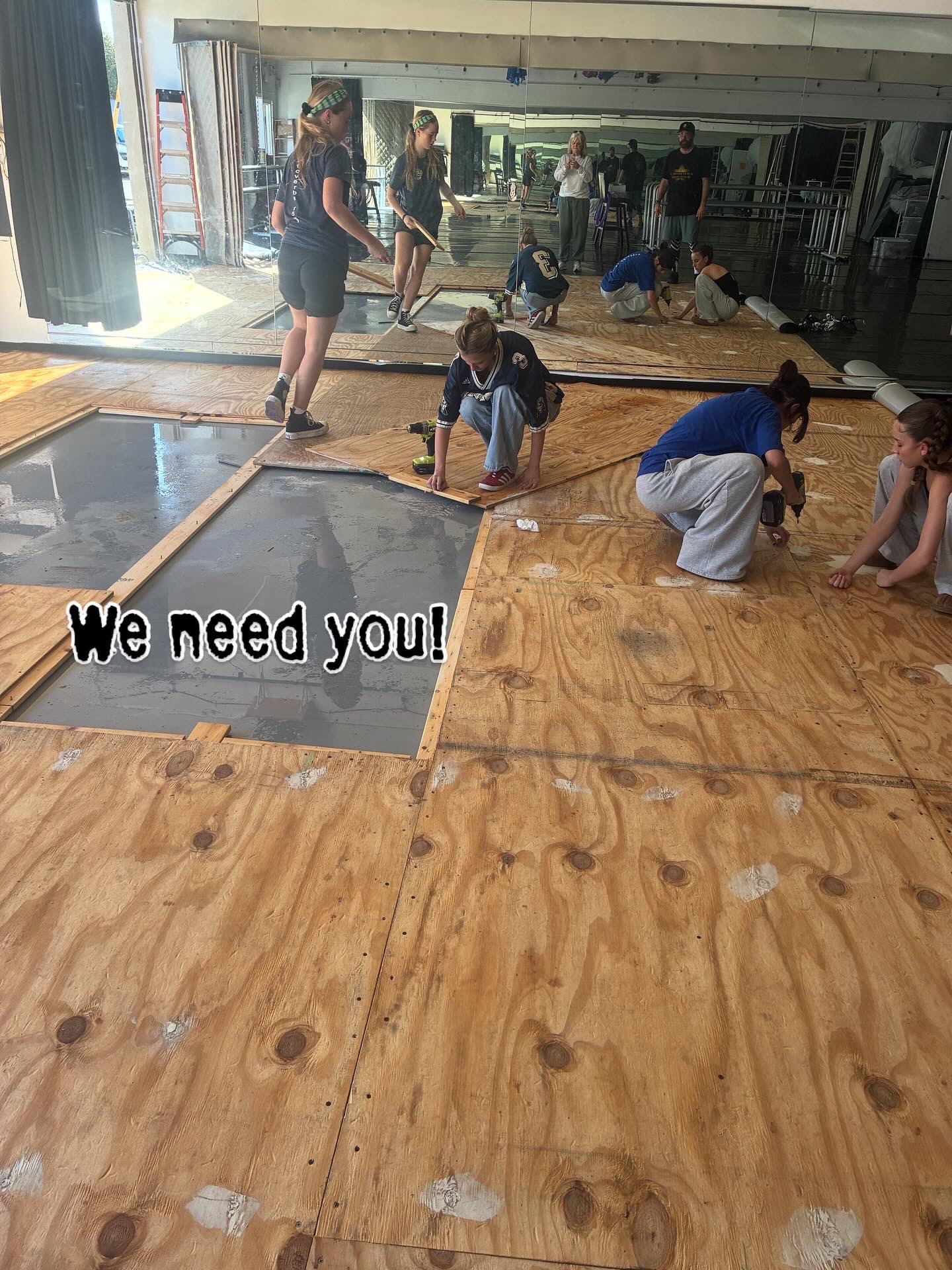 We were flooded this last Sunday in both our theatre and dance spaces. We are currently closed as floors and walls have to be replaced. Not exactly what we were planning, but also not ever outside of the will of God. We are now in the stages of rebuilding. Our landlord has been taking great care of us, but we are responsible for replacing damaged items: flooring, desks, tables, and as you know, the list goes on.