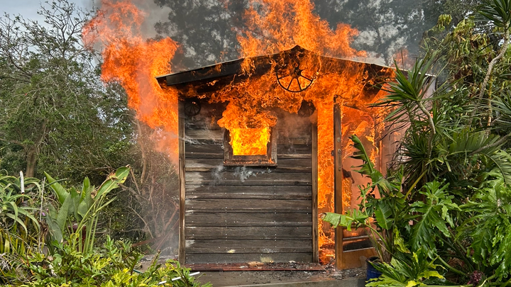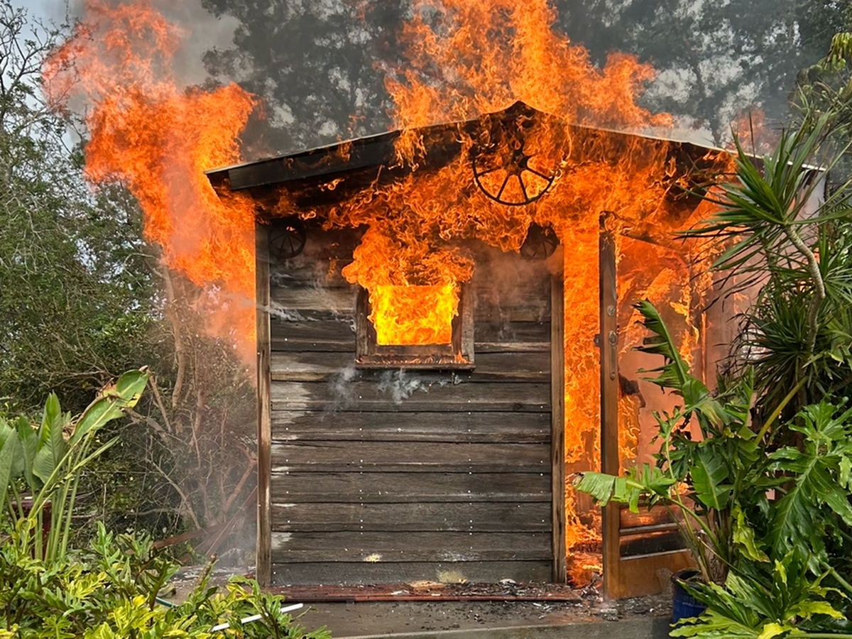 But in the brief moment he stepped away, tragedy struck — and the sauna, his labour of love, went entirely up in flames. Very quickly the entire thing was on fire and then gone.