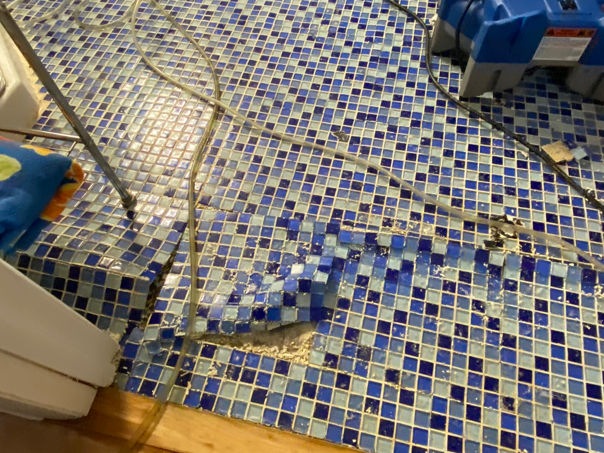 While Elaine and Dennis were out of town, there was a failure in the heating system resulting in freezing and pipe breaks in a hot water heating line. I was first to check on the property after the break and found an inch of water in the apartment and basement below, along with hot steamy conditions and water condensation on all surfaces. The floor was already buckling and plaster dropping from the ceiling. All clothing and personal items were soaking wet from the humidity and the hot water spray. The water was secured, which shut off the heating until the portion of the system that failed could be isolated. A local recovery company was dispatched to dewater and dehumidify the apartment, but the damage is severe. As I write this, the equipment is still working to dry out the apartment, but I'm told much of the drywall needs to be removed to see if the moisture penetrated the walls. Already, much of the top layer of flooring has been removed, but much of the underfloor may be asbestos, which requires special remediation and removal.