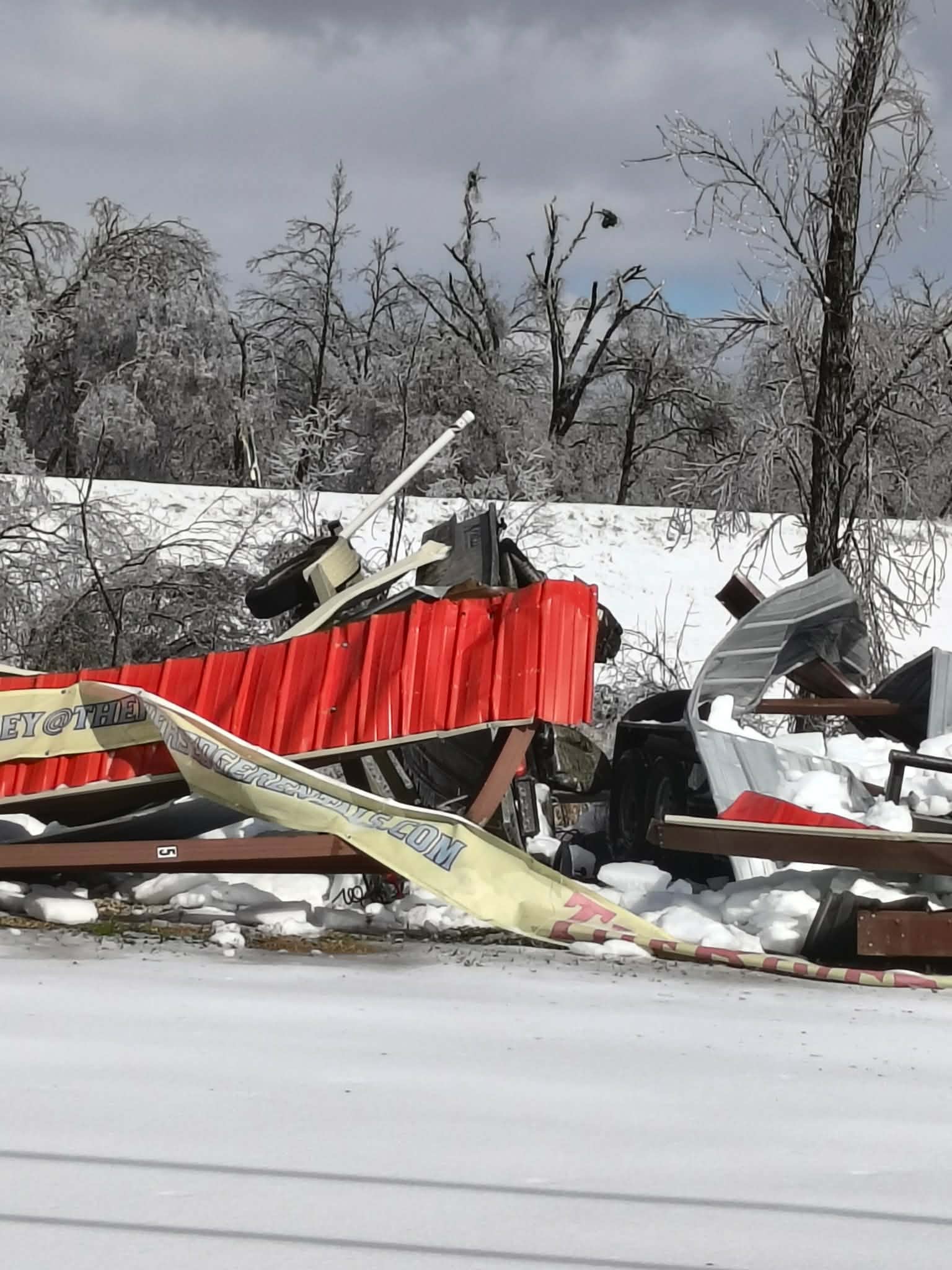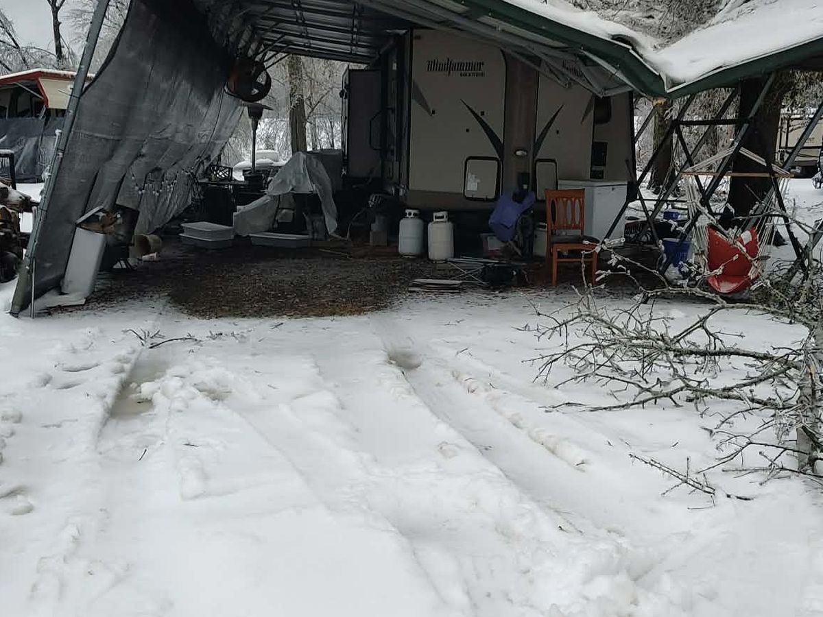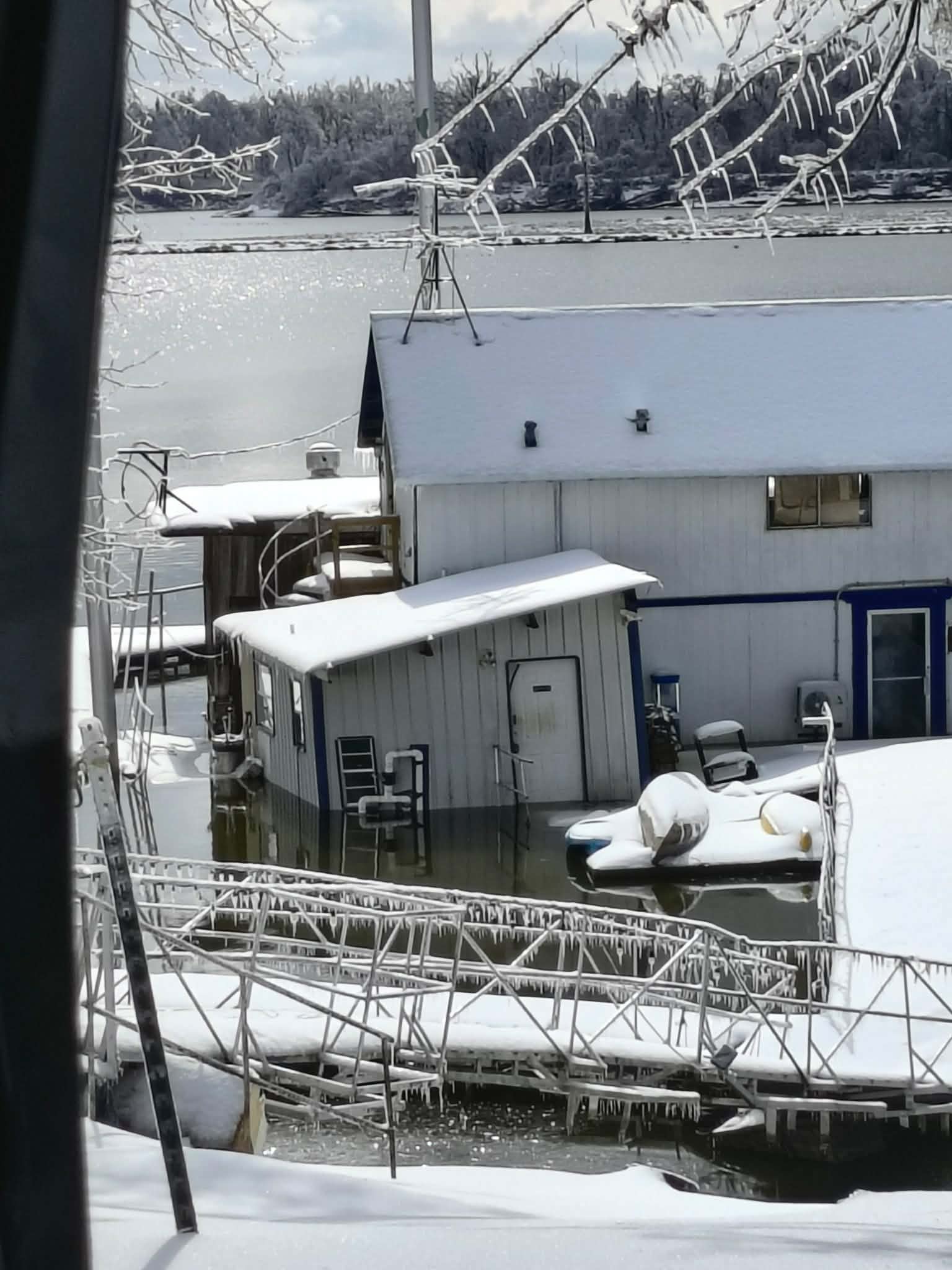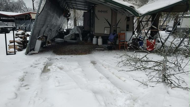 The awning on his camper collapsed from the weight of the ice, causing catastrophic damage. The campground where he and my stepmom were living is completely destroyed. Campers collapsed, houseboats sank, and even the waterfront restaurant went under. What was once their home and livelihood is now gone.