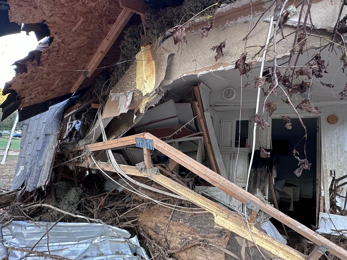On September 27, 2024, our hometown Fairview, NC, was hit by Tropical Storm Helene. The Valley on Morgan Hill Rd (end of Garren Creek towards Broad River). Our neighborhood had mudslides, flooding and roads crumbling away. My mom’s home was hit by a double-wide and split into three pieces. Bedroom and bathroom , then living & kitchen. . My mother’s bedroom and bathroom and crushed in laundry room are the only things left intact and moved a football field from her land.