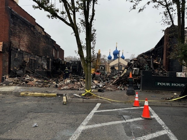 As you may know, Riley’s Pour House suffered a catastrophic fire on November 14, 2024. It destroyed the entire building, furniture, equipment and decorations – but left us with 40 years of great memories of food, drink, music and great craic. And one silver lining was the outpouring of love and support from the community. The Pour House meant a great deal to the community as a gathering place, a venue to hear music, and as an economic driver for Carnegie’s business community.