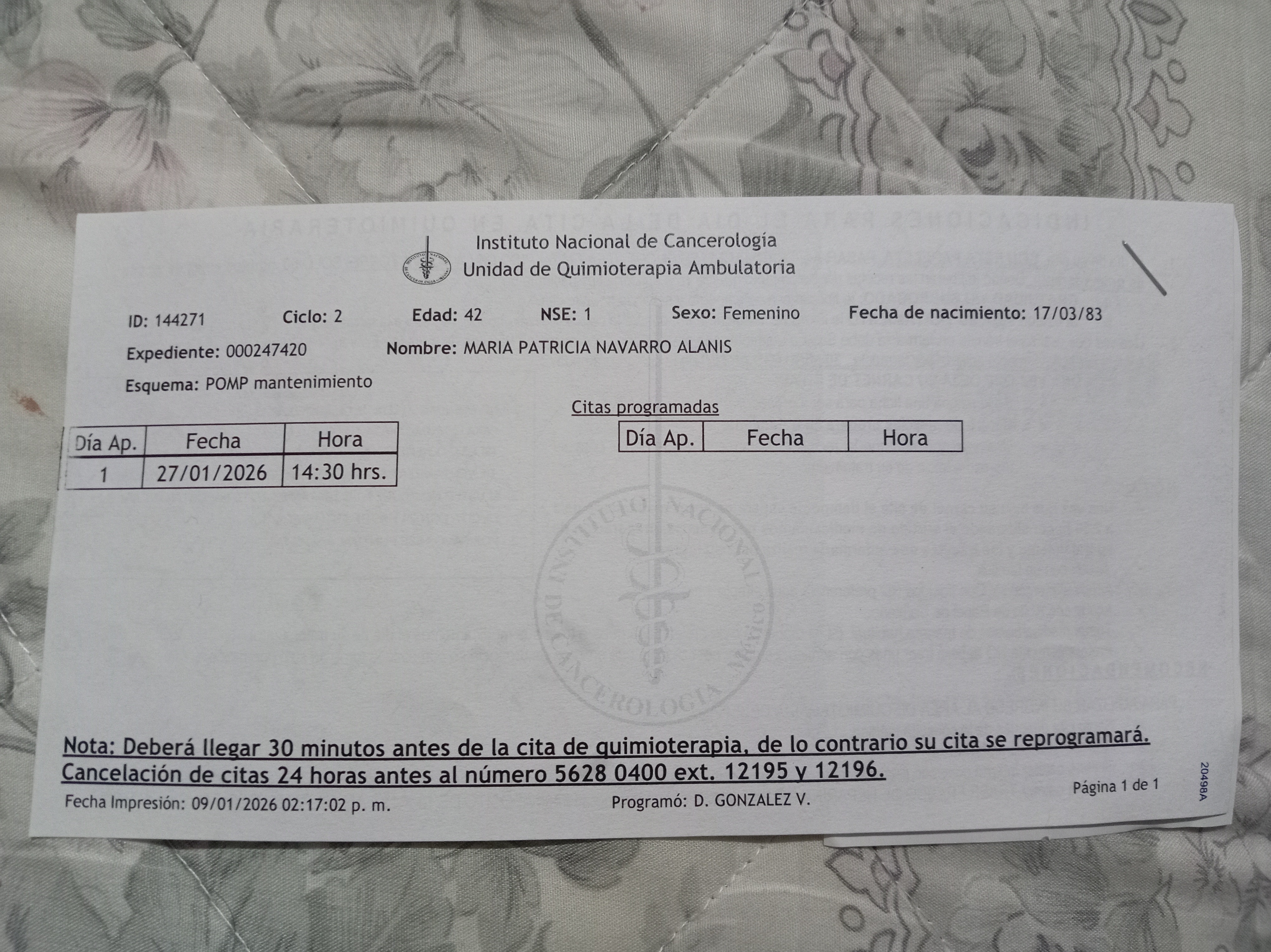 Hola me llamo María Patricia Navarro Alanis y tengo 42 años fui diagnosticada con leucemia linfoblastica aguda tipo B. Tengo un niño de 9 años que me necesita soy lo único que tiene ya que soy mamá soltera, me separé del papá de mi hijo por situaciones de violencia y adicciones que él adoptó, obviamente no quería una vida así para mi hijo, desde ese momento yo me hice cargo sola de él hasta que la vida me puso ésta prueba. Desafortunadamente tuve que dejar de trabajar y no cuento con los recursos para cubrir mi tratamiento así como traslados a la CDMX para recibir mi tratamiento yo vivo en Cuernavaca Morelos y también tengo que recaudar fondos para mí trasplante de médula osea espero en Dios poder contar con su ayuda,hoy inicie con mi fase de quimioterapias y serán 53, 4 cada semana los días miércoles jueves viernes y sábado hasta completar las 53 y salir negativo para mí trasplante de médula osea, los gastos de traslado son muchos y si en el hospital falta algún medicamento lo tengo que comprar, les pido su ayuda para poder solventar todos los gastos. Dios multiplique cada peso que de todo corazón me donan.