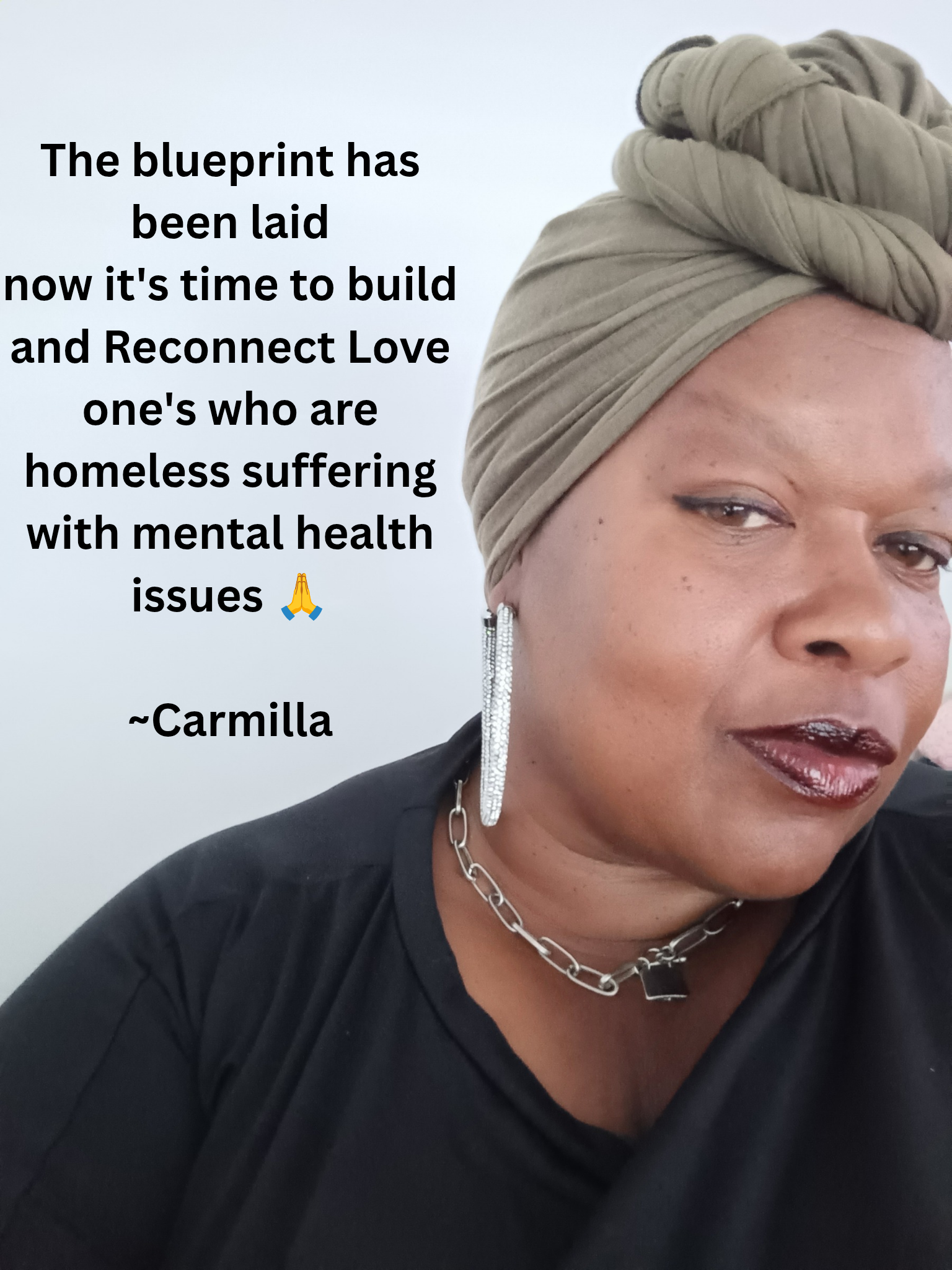 My name is Carmilla Ligons, and I am creating a nonprofit called Reconnect Now. Our mission is to reunite families with displaced loved ones who are struggling with homelessness and mental illness.