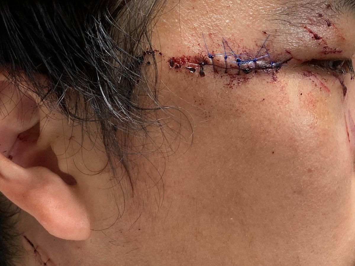 An ambulance took Shuai to the ER. In total, he needed 20 stitches to close up his slash wounds.