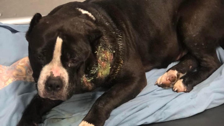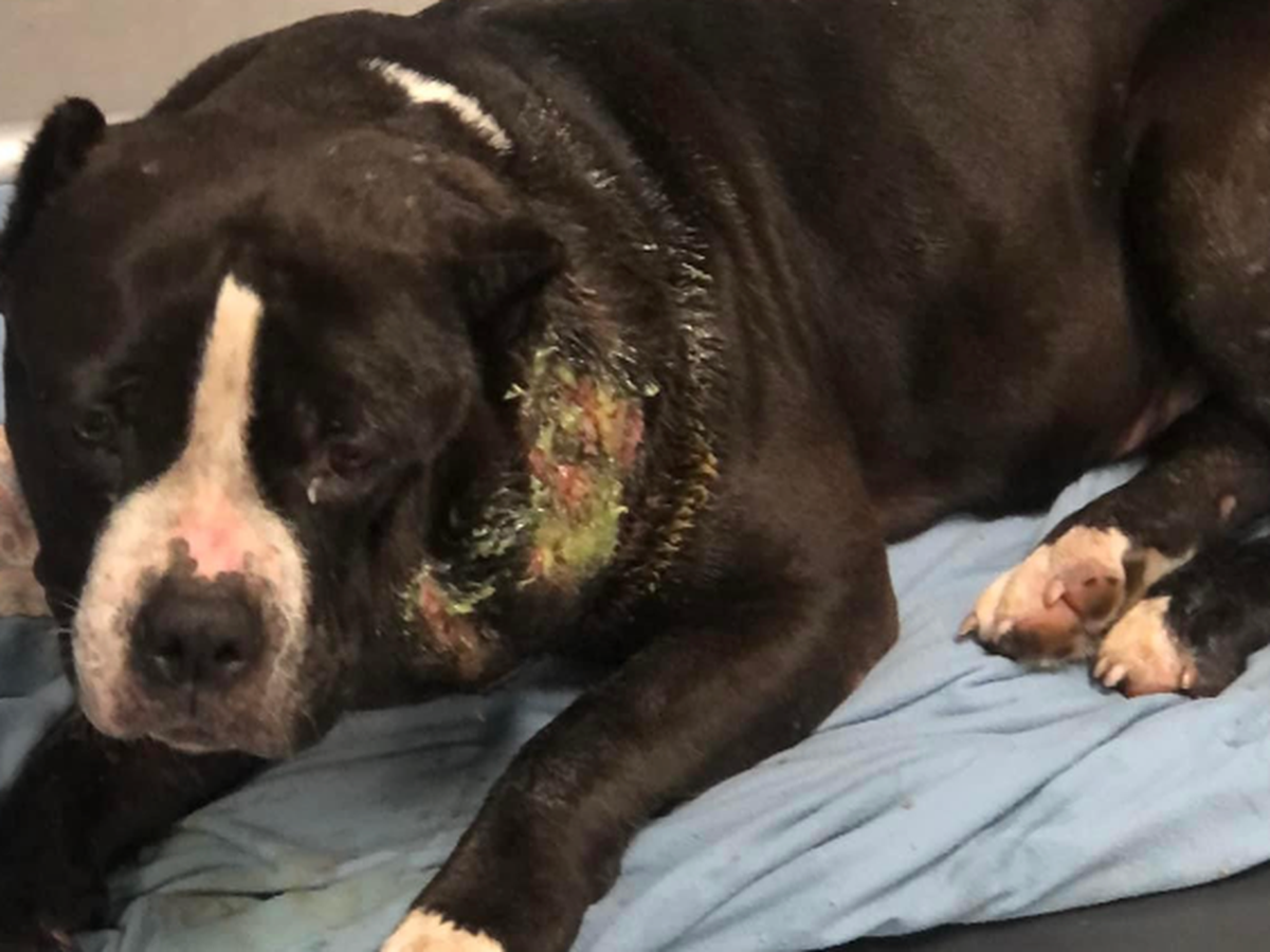 At some point she got attacked or caught up in something bad and she had a terrible infection in her neck from it as you can see in the picture.