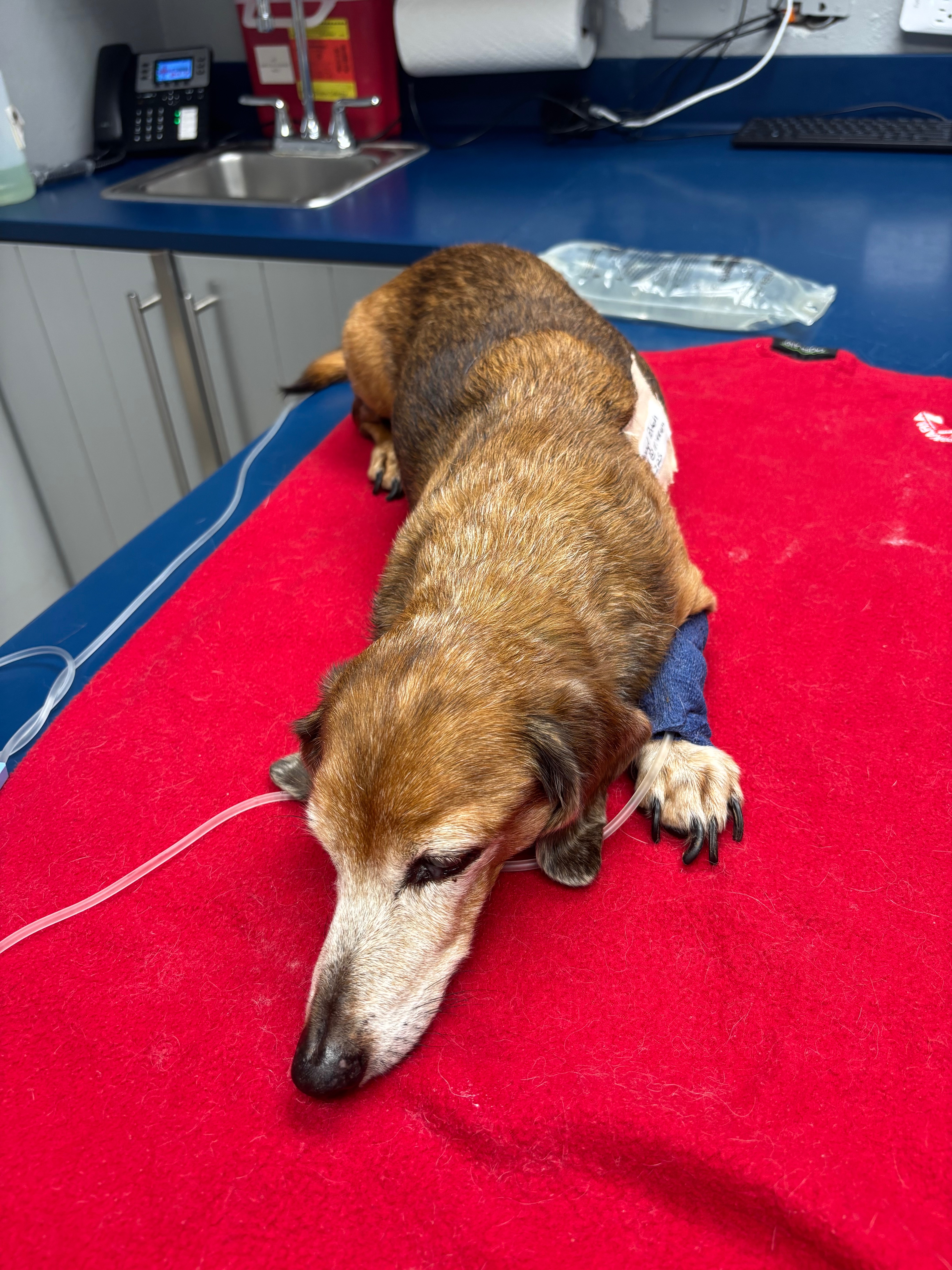 Necesita dos cirugías que son más de $10,000 USD sin contar el costo de hospitalización que por noche son mas de $400. Debido a la exageración de estas cantidades hemos decidido no proceder con las cirugías y llevarla a casa para que se recupere. El veterinario nos indica que puede tomar varias semanas la recuperación sin cirugías y veremos si puede volver a caminar o no. Solo pedimos colaboración para los gastos que se han hecho en hospitalización, medicamentos y terapias que estará tomando.