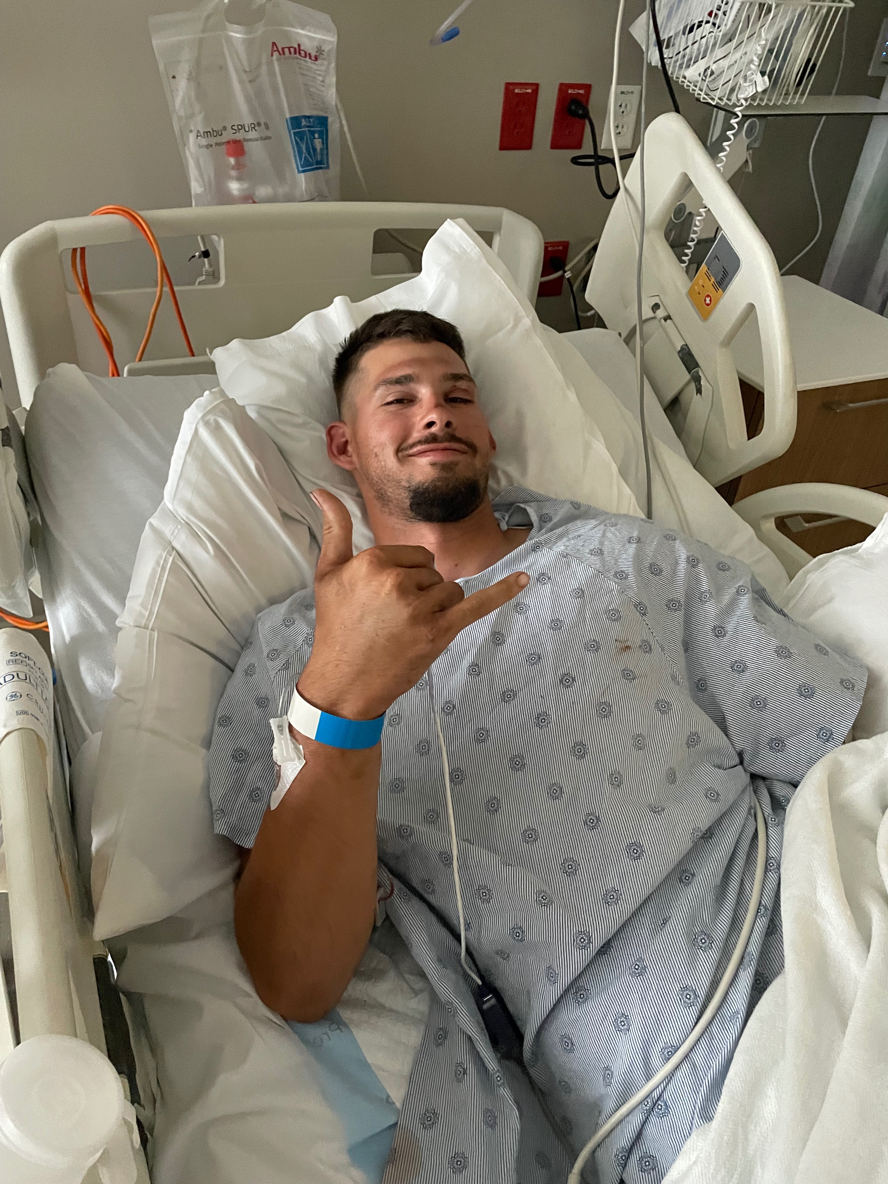 Yesterday, he was in a terrible motorcycle accident and lost his left arm. Despite this, he is still his happy self and his spirits are high. We are very grateful that he is still here thanks to the quick thinking of his dad who was with him. He did have surgery, but they were unable to save his arm. He will be having a few more surgeries to clean the wound and prevent infection. Then they will be grafting muscle and skin from his back to prepare his arm for a prosthesis.