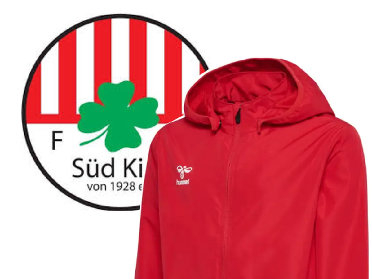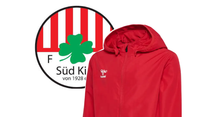 Die Jacken werden mit FC Süd Kiel Logo, einer Nummer und einem Sponsorendruck einer gemeinnützigen Organisation versehen.