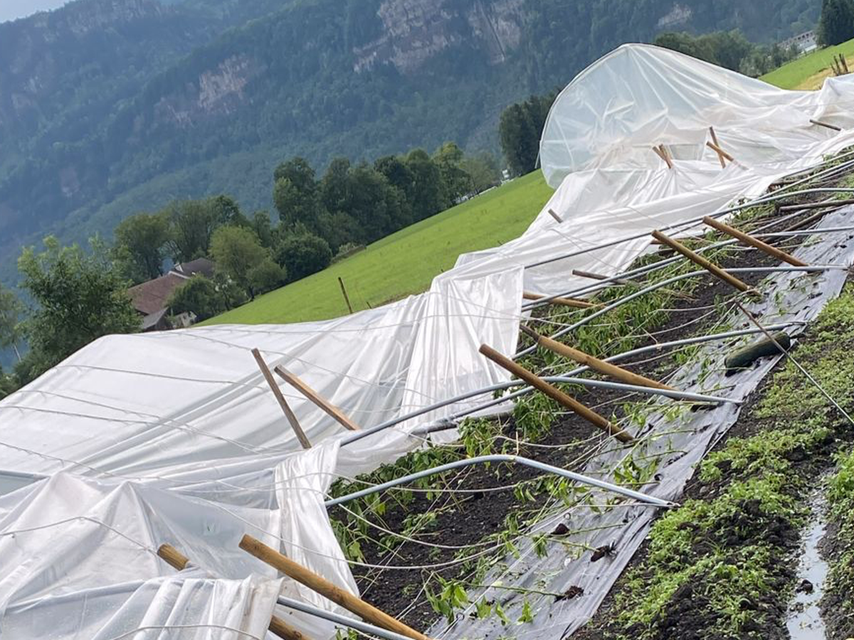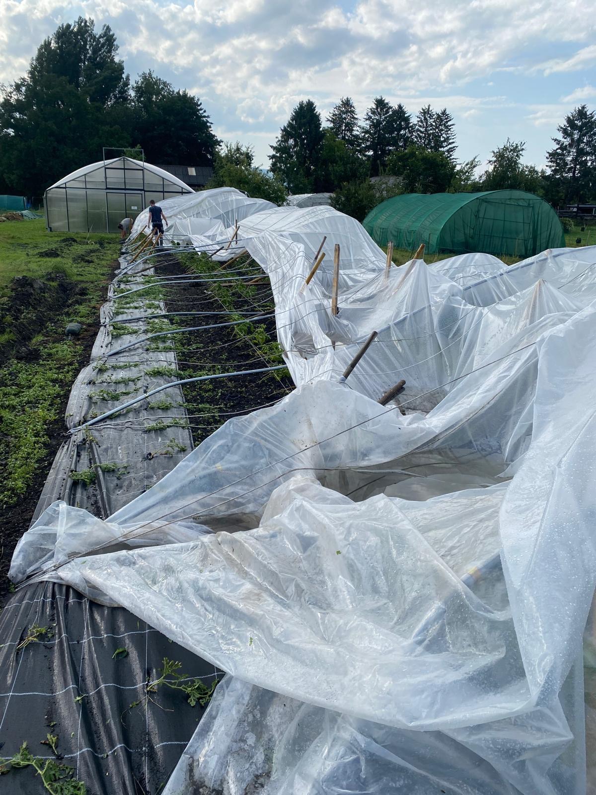 Seit gestern bangt er um seine Existenz, denn das Unwetter am 23. Juni am Nachmittag hat seine Felder leider nicht verschont. Heftige Sturmböen und Hagel haben seine Ernte zerstört, Gewächshäuser wurden stark beschädigt, sodass sie nur mehr abgebaut werden konnten, junge Pflanzen kämpfen ums Überleben. Monatelange Arbeit wurde binnen weniger Minuten vollständig zerstört.
