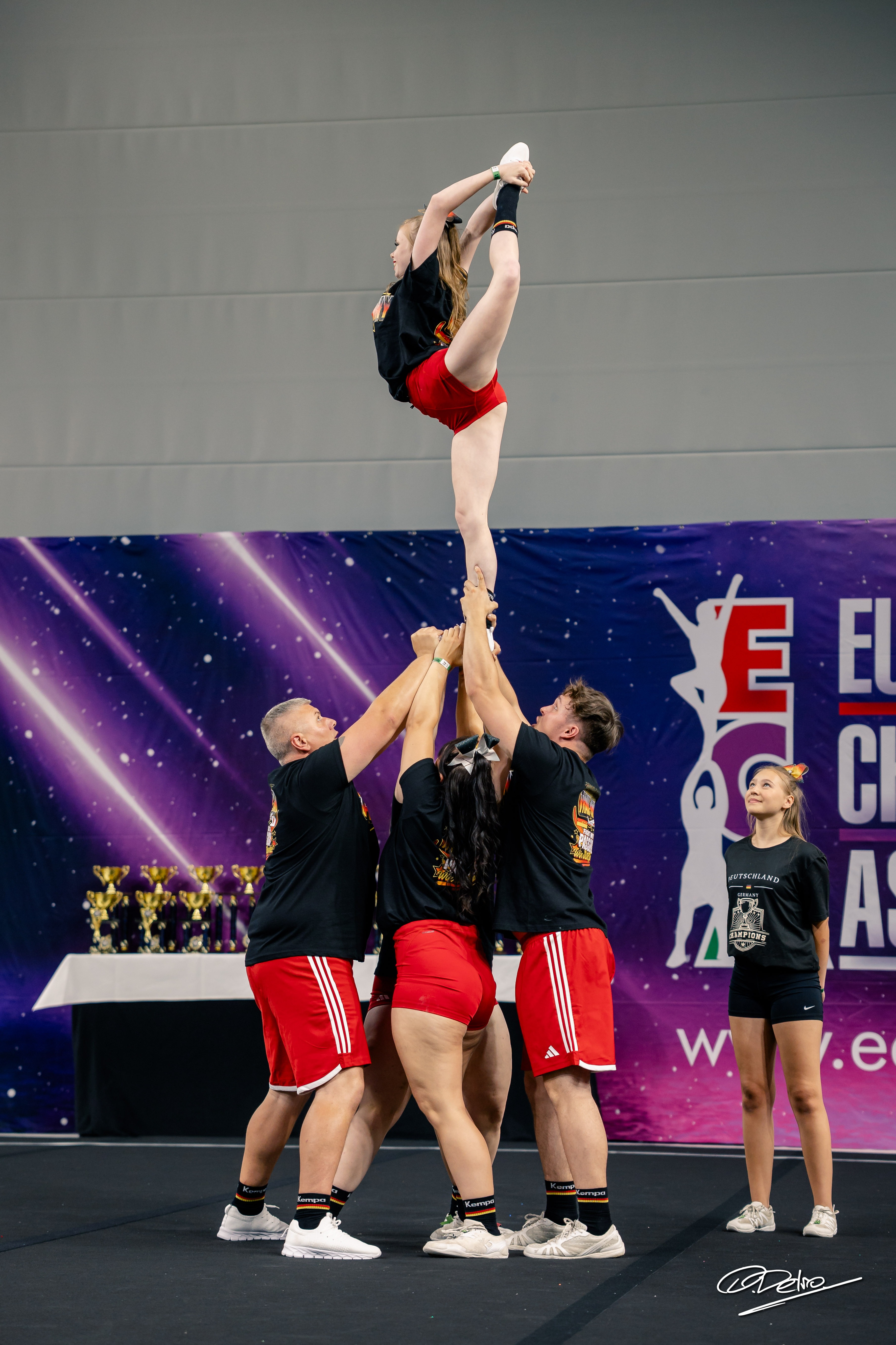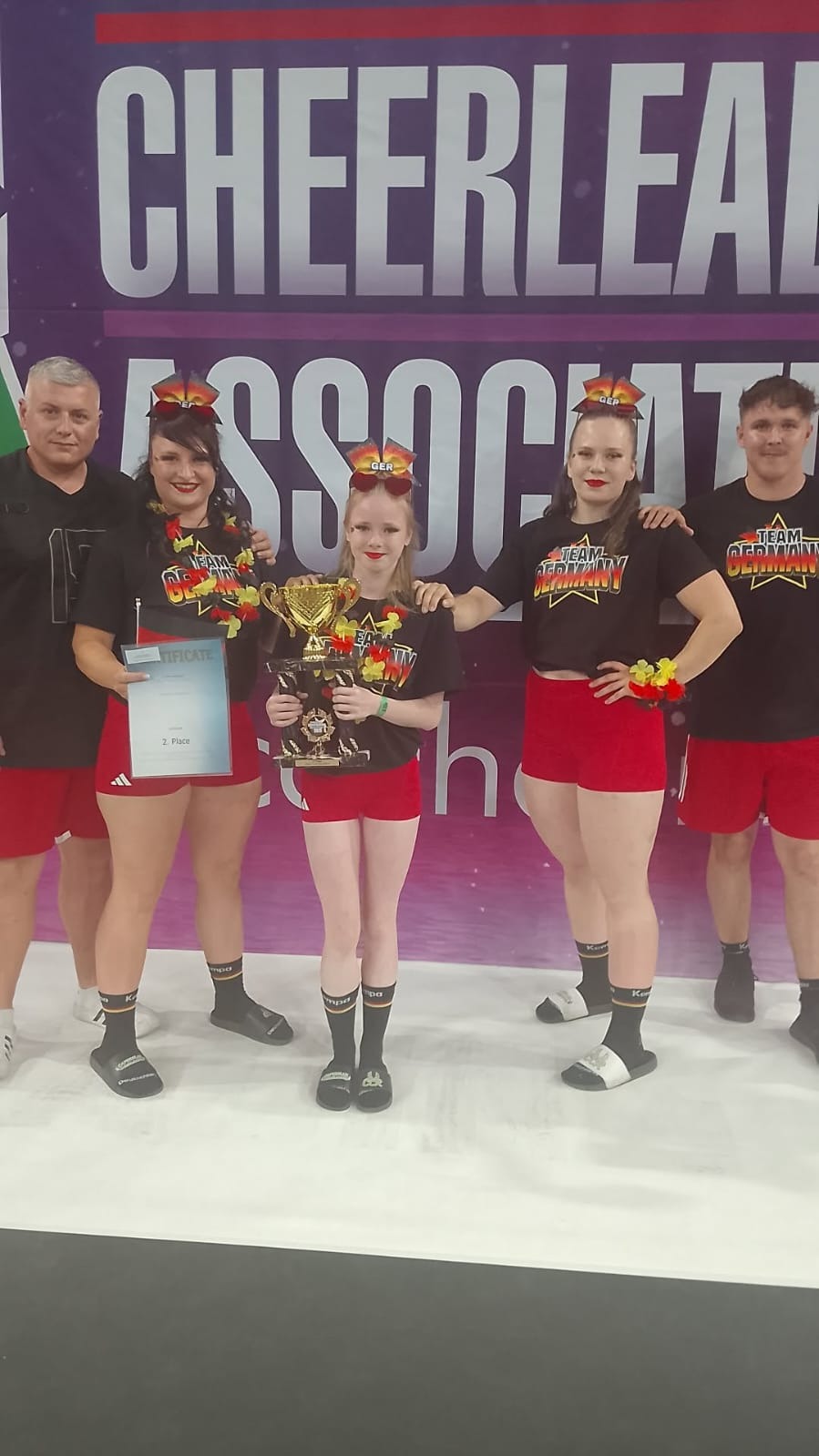 Bei der Europameisterschaft an der wir nun Anfang Juli teilnahmen konnten wir ebenfalls mit unserem Programm überzeugen und den Titel Vize-Europameister mit in die Heimat bringen. Aus diesem Grund haben wir die Ehre im Dezember bei den Cheerleading Weltmeisterschaften in Japan Deutschland in der Kategorie Senior Mixed Groupstunt zu vertreten.