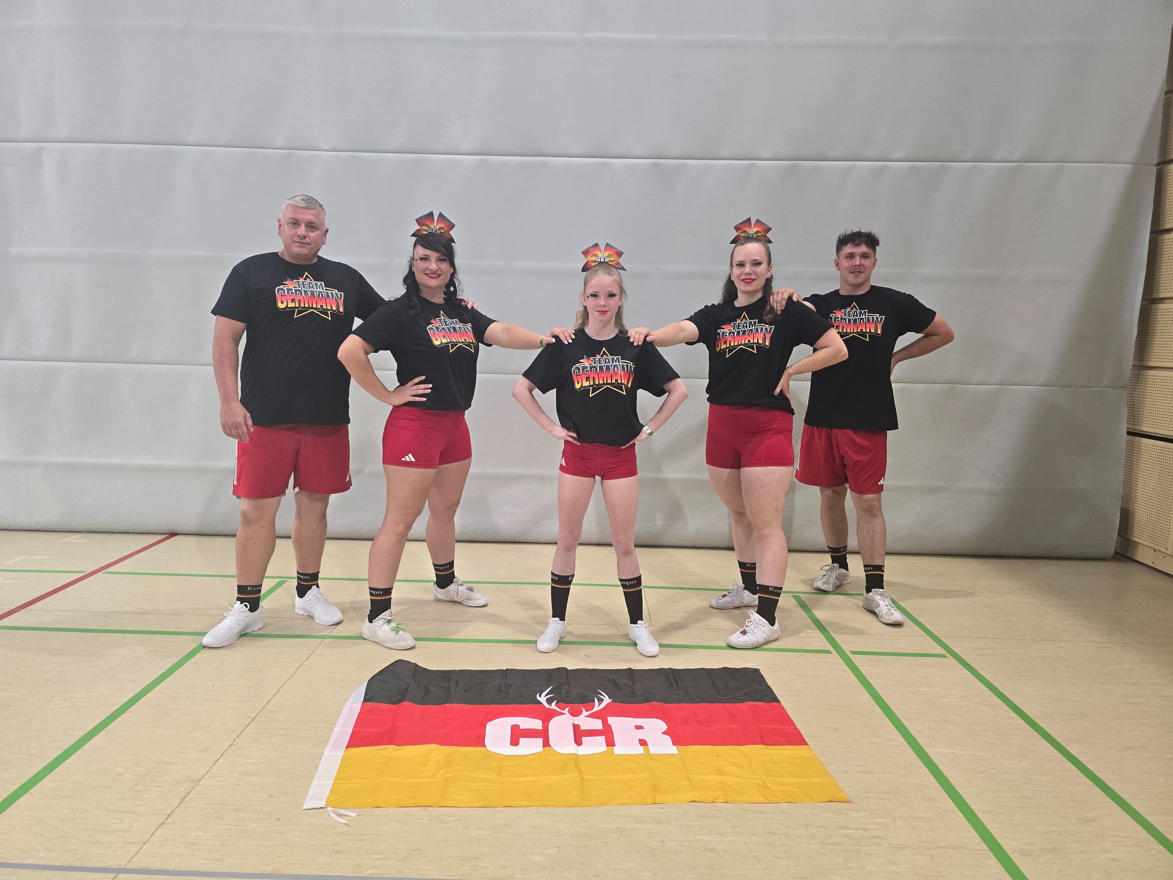 Nach vielen Trainingseinheiten voll harter Arbeit, Spaß, Tränen und Vorfreude haben sich die Sportler zusammen mit ihren Coaches und tollen Fans auf den Weg nach Frankfurt am Main gemacht um dort zu präsentieren, woran fleißig gearbeitet wurde. Ohne hohe Erwartungen, mit dem Ziel drei fehlerfreie Programme auf die Matte zu zaubern und gemeinsam einen wunderbaren Tag voller Eindrücke zu verbringen, haben sich alle Sportler vorbereitet, ihre Uniformen angezogen, die Schuhe fest geschnürt und angefangen zu strahlen. Voller Freude konnten alle Teams auf der Matte wundervolle Programme präsentieren welche nicht nur die Jury, sondern die gesamte Halle begeisterten und das Publikum zu lautem Beifall animiert haben. Sowohl das Junior- als auch das Senior-Team konnten sich durch ihren Auftritt mit dem 1. Platz den Titel _Deutscher Meister 2025_ sichern. Als dann auch noch verkündet wurde, dass die Erst platzierten Teams sich für die Europameisterschaft im Juli qualifiziert haben, hätte die Freude gar nicht größer sein können.