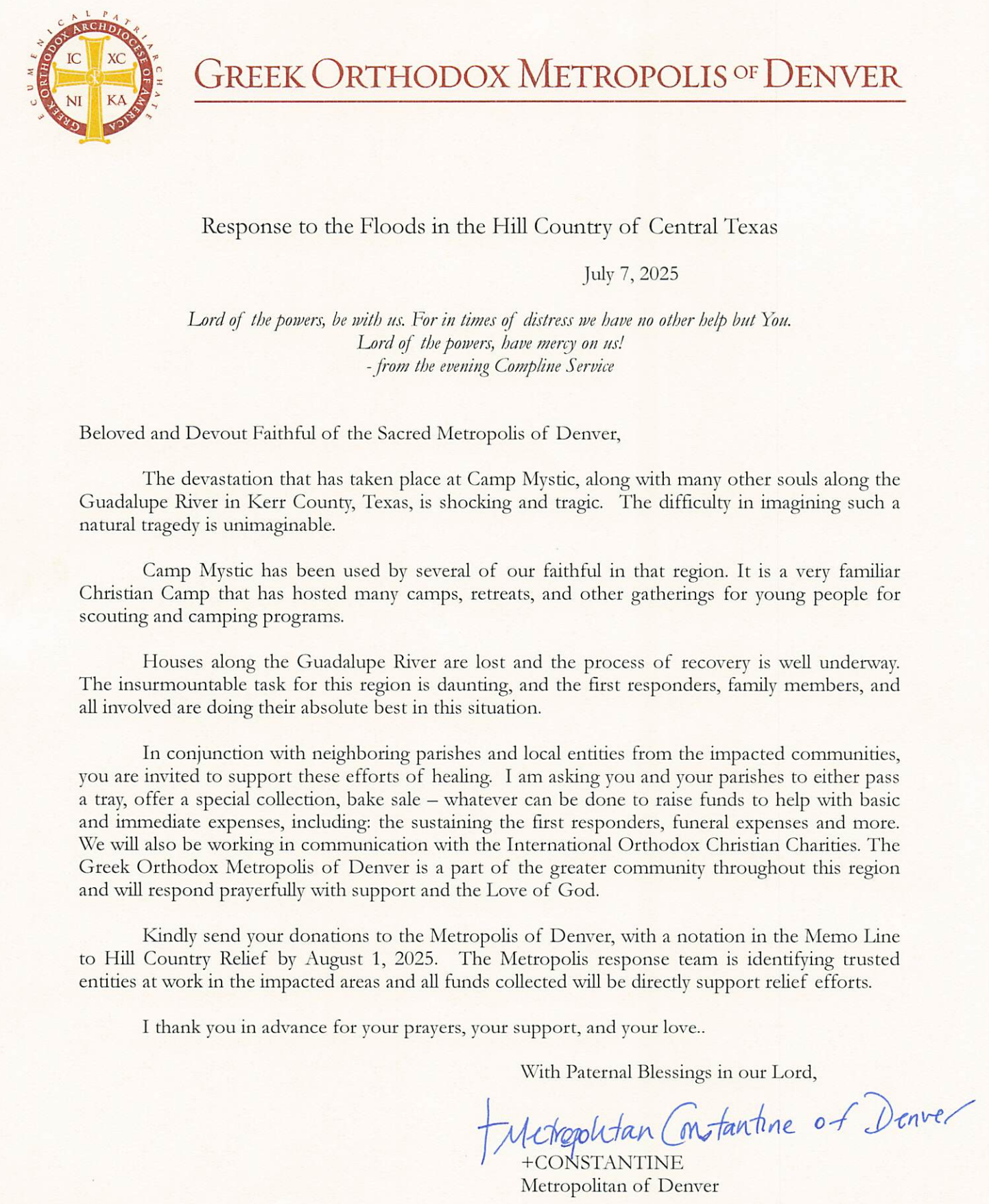 Transfiguration Greek Orthodox Church's Philoptochos Society, a dedicated nonprofit located in Austin, Texas, is urgently raising funds to aid families devastated by recent flooding in The Hill Country. Your generous donation will provide essential relief—food, shelter, and hope—to those rebuilding their lives. We are raising funds to help with basic and immediate expenses, including: sustaining first responders, funeral expenses, and more.