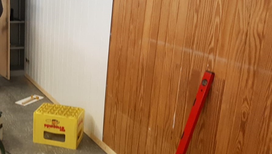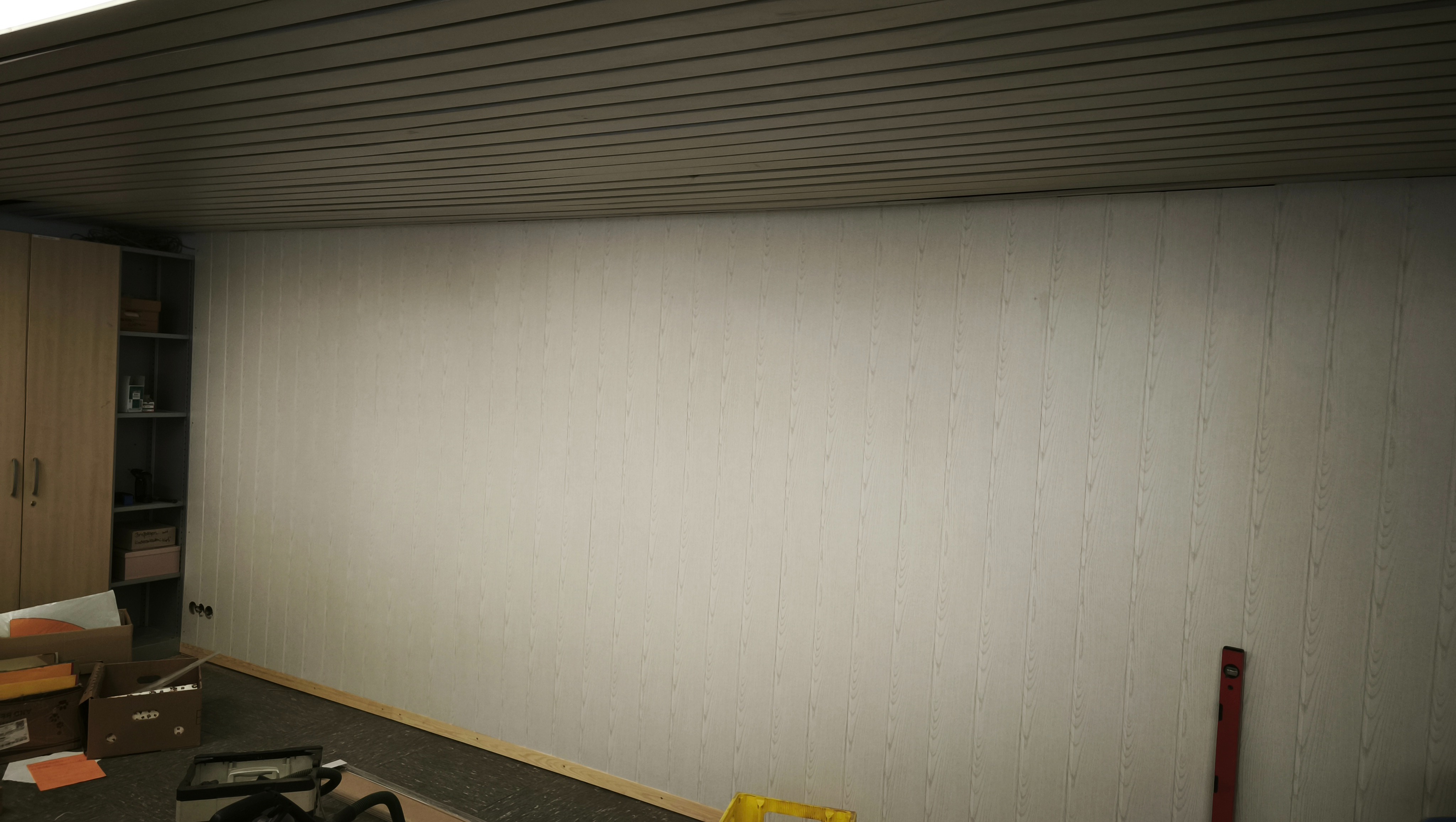 Vergangenes Wochenende wurde bereits fleißig ausgeräumt, gestrichen und eine uralte Holzwand mit neuen und vor allem hellen Paneelen verkleidet.