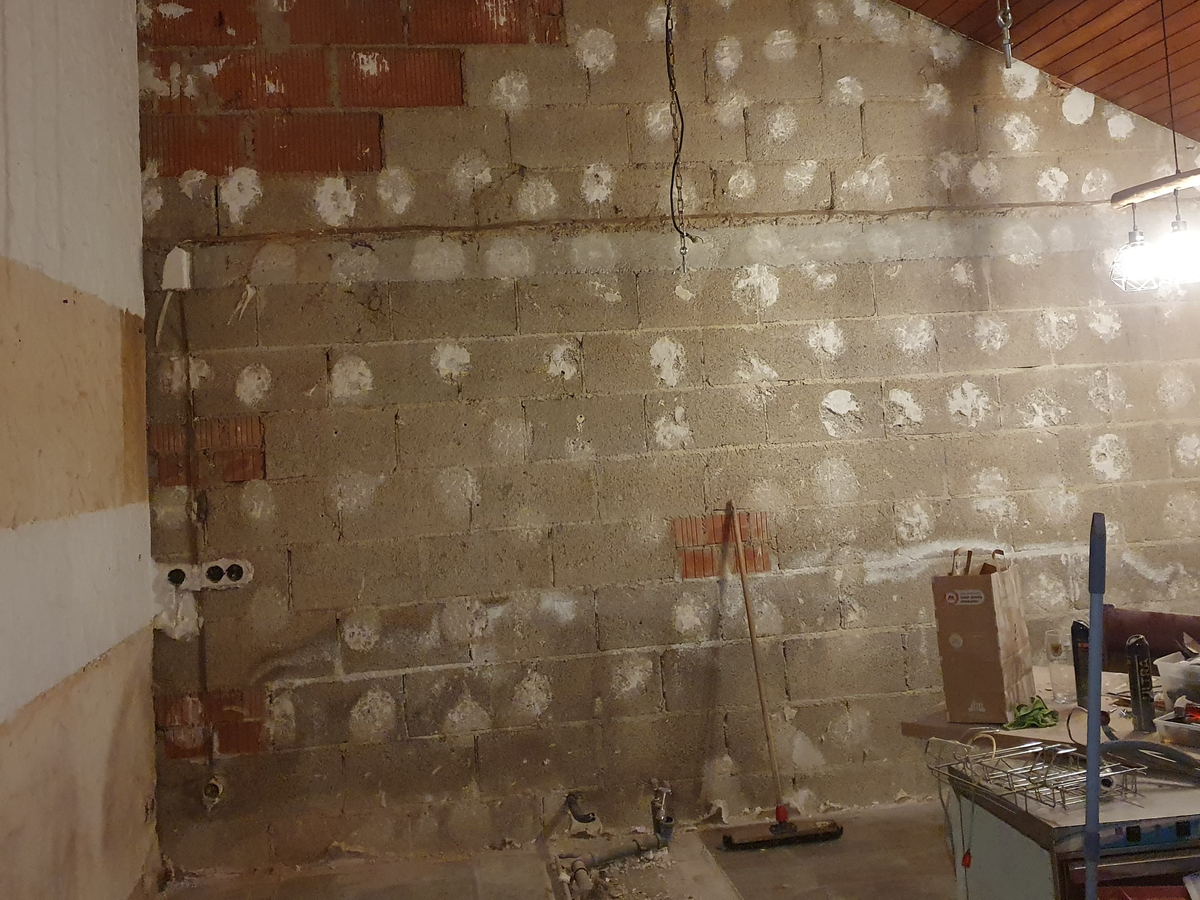 Rückbau der alten Theke und Freilegen der betroffenen Wand und Entsorgung der Altmaterialien durch den Verein