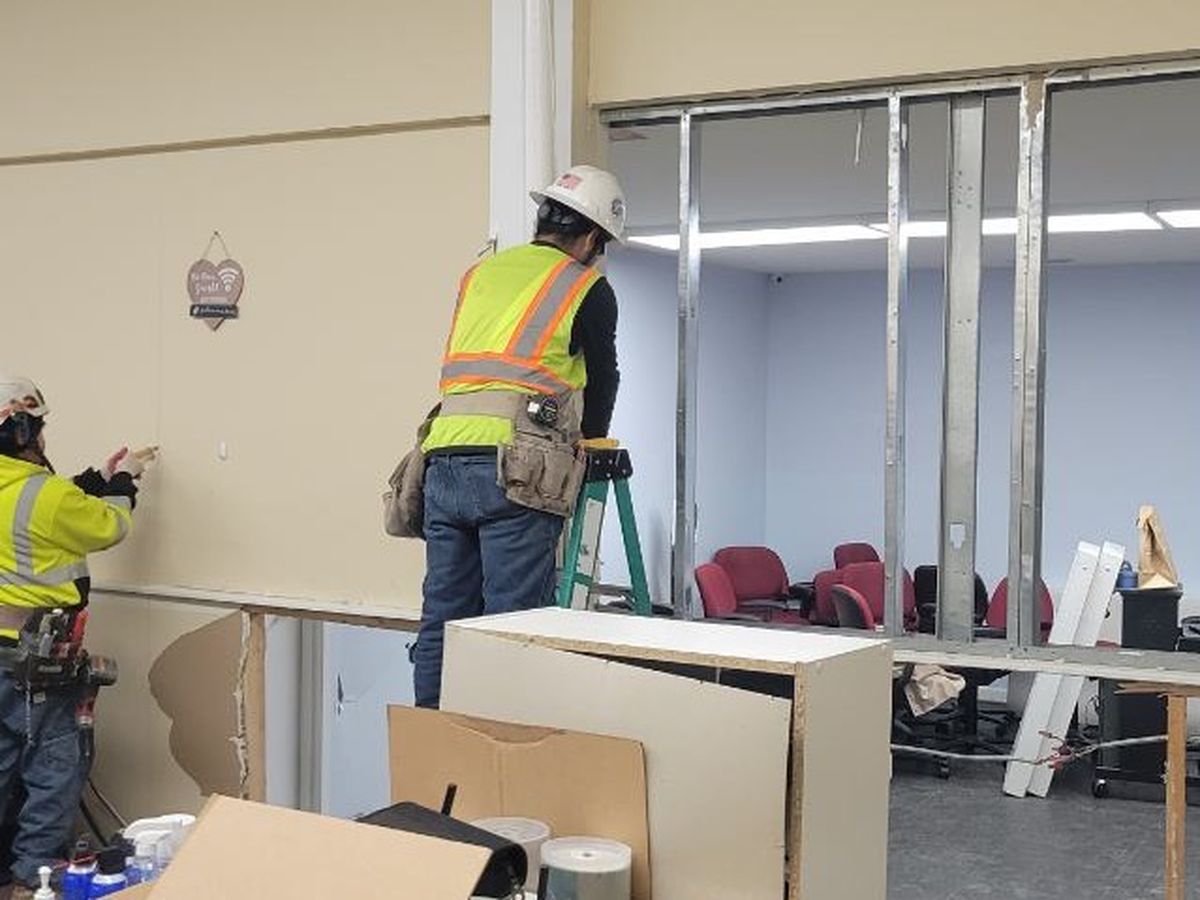 The repairs consist of a renovation of classroom one, repair of the wall near the AV booth, repair and repainting the ceiling in the sanctuary, repair the wall in the sanctuary, repaint all the walls in the sanctuary, new carpet in the sanctuary and in classrooms one and two, repaired and repainted wall in classroom two, new siding and stonework on the exterior of the building and poles.