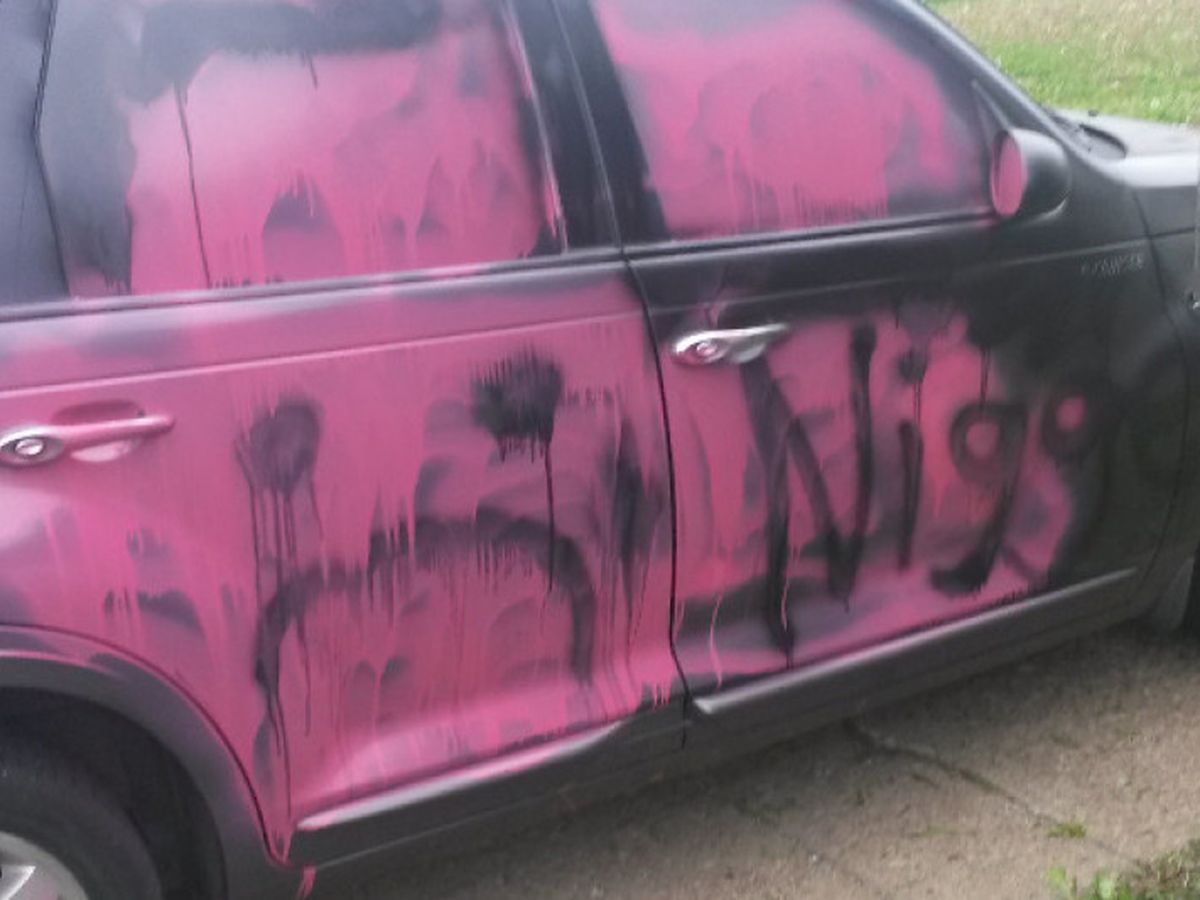 It's a shame that there has to be some people out there who do foul stuff to people who work so hard just to get by. I put my friend up in my place to help her build up the money to get into a new apartment. She worked 12 hour shifts daily for over a month and raised the money she needed to move into her apartment.  She's been there a little over a year until one day, some bigoted vandal sprayed up her car in the middle of the night, and flattened two of her tires. She came out to go to work as usual, and saw what they did to her car.