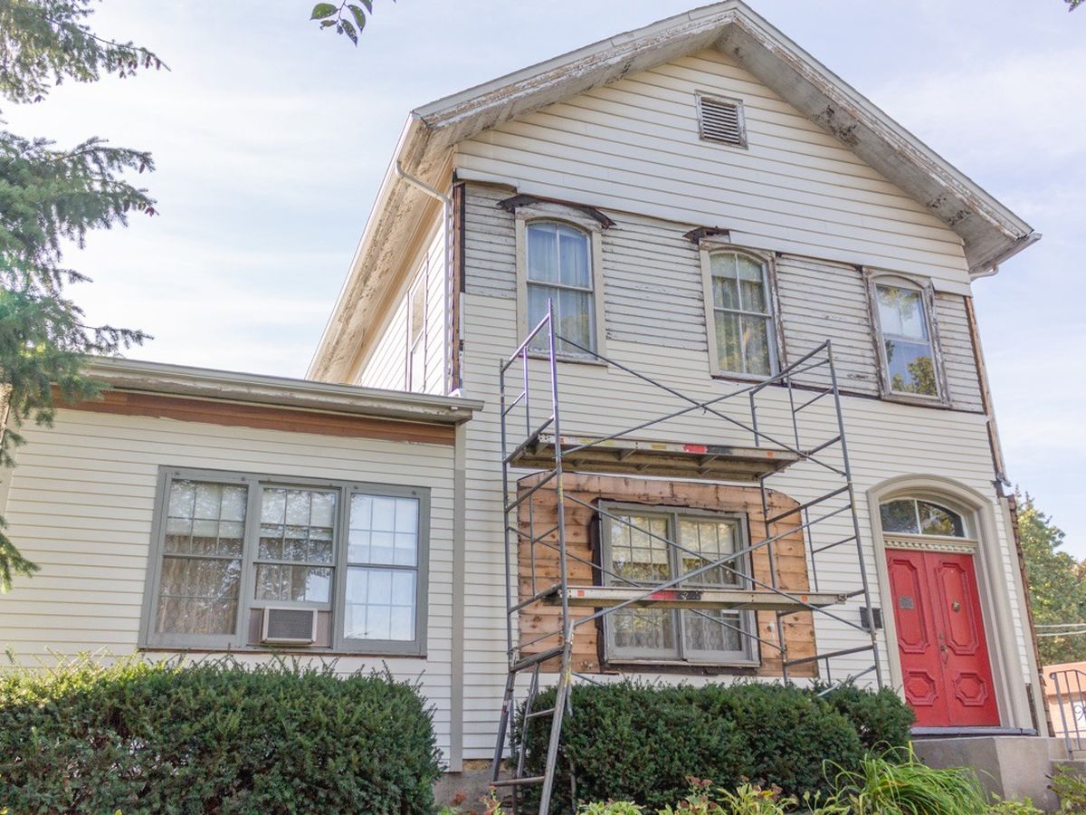 To date, we've exposed much of the original wood siding on the front of the building that was covered up in the 1960s. We've painted and repaired much of what's exposed, and plan to finish the front of the house in the summer of 2020 - but we need your help! A large-scale electrical project inside the home has also taken place during this time, and many of these projects are not grant-eligible, leaving it up to us to fund the vast majority of these repairs ourselves.