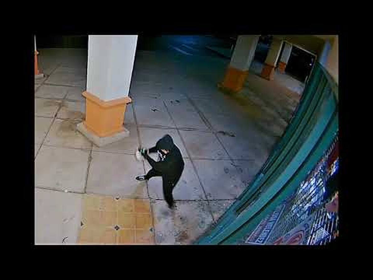 Watch the video of this cowardly terrorist attacking the building in the middle of the night. Watch him break the windows with a baseball bat, then prepare and light Molotov cocktails, and hurl them into the office through the broken window. Fortunately, the building was unoccupied.