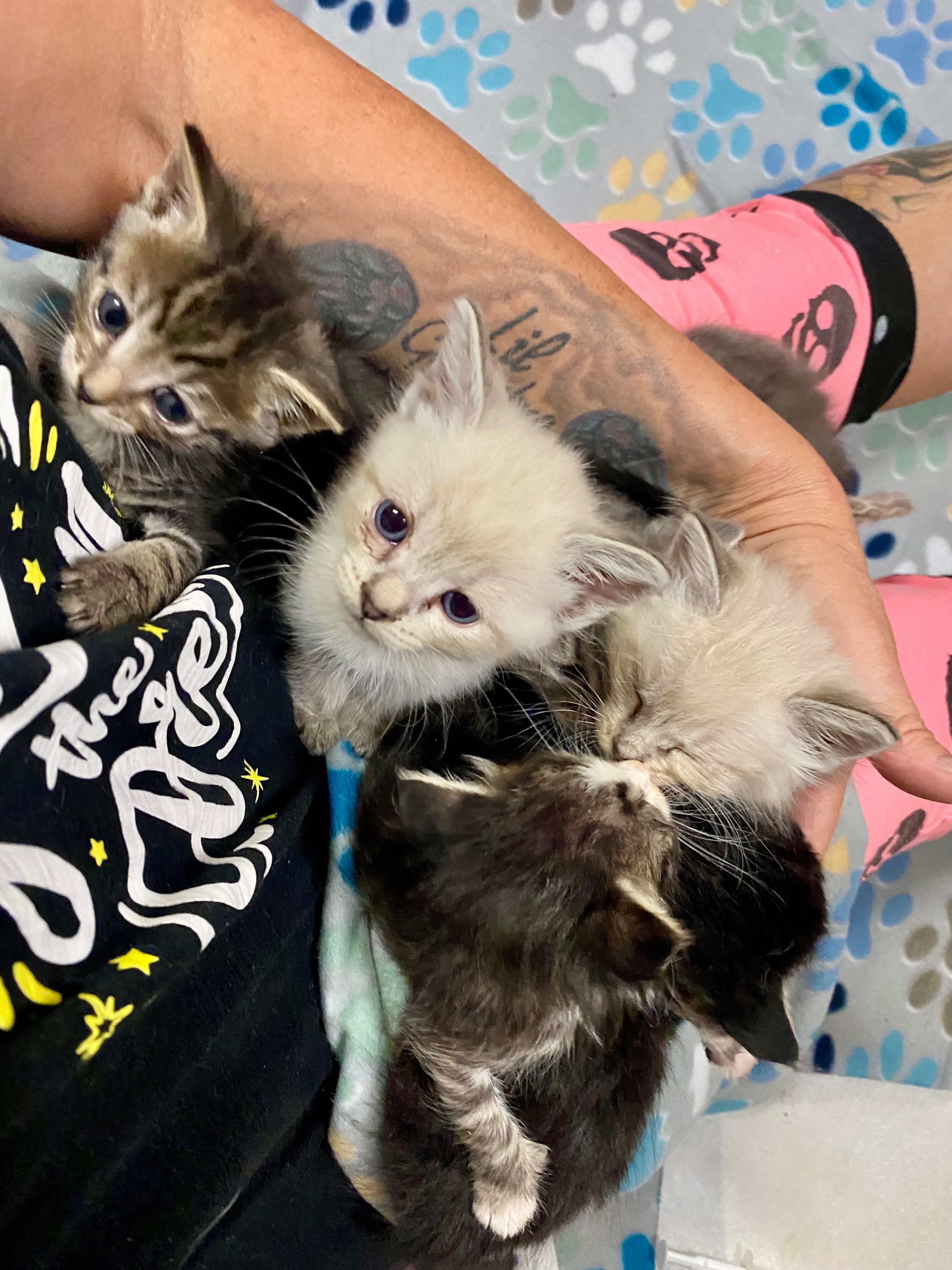 Hello, I’m Leeanne and recently have had 10 kittens come into my life. I wasn’t looking for them, but here they are! Six of them were very sick and covered in fleas and have needed lots of care, trips to the vet, and meds. These 6 are around 6 weeks old now and will need first shots soon! We lost our tiniest guy due to him being the runt and not strong enough, and it was horrible! I have four more from a different litter, and they are pretty healthy but need first shots and can go to homes! They are around 9 weeks old. With all this being said, I have maxed my care credit for these little guys, and we are not done yet! So I’m gonna put this out there and ask for help! I couldn’t not rescue these little babies and leave them to die, so now we are getting close to the finish line where they are healthy and need good homes!! I don’t like asking for help, but it would be greatly appreciated if anyone is able to help. Thank you