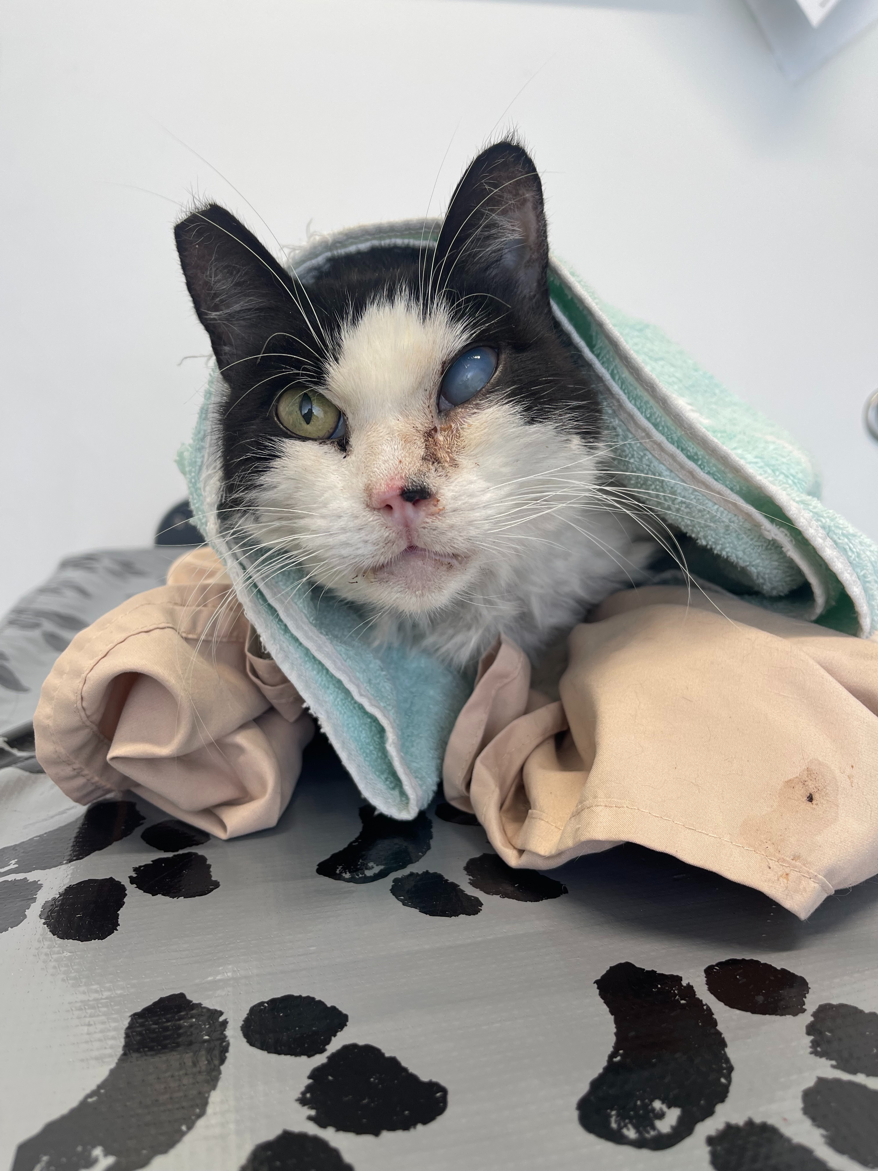 Second, Oreo needs an enucleation (eye removal). His eye is beyond saving and, if not removed soon, could lead to further complications, pain, and potential systemic infection.