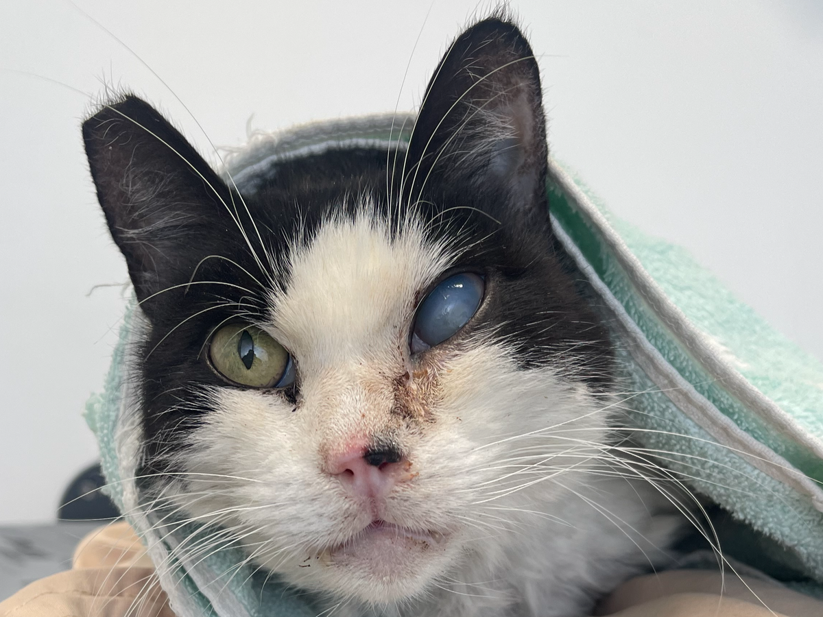 Segundo, Oreo necesita una enucleación (extracción del ojo). Su ojo ya no se puede salvar y, si no se opera pronto, podría causarle más dolor, complicaciones e incluso infecciones graves.