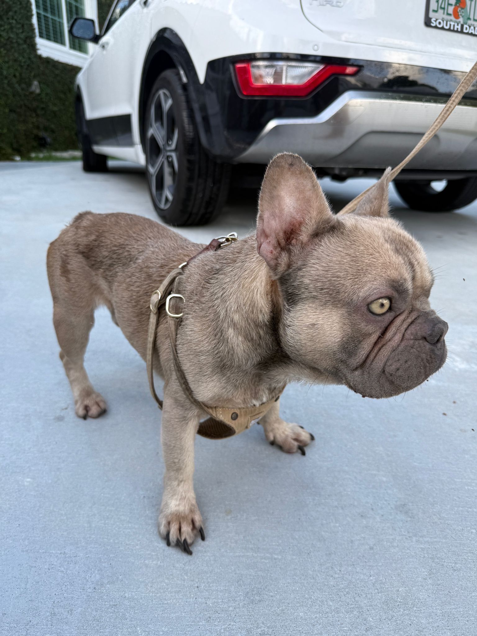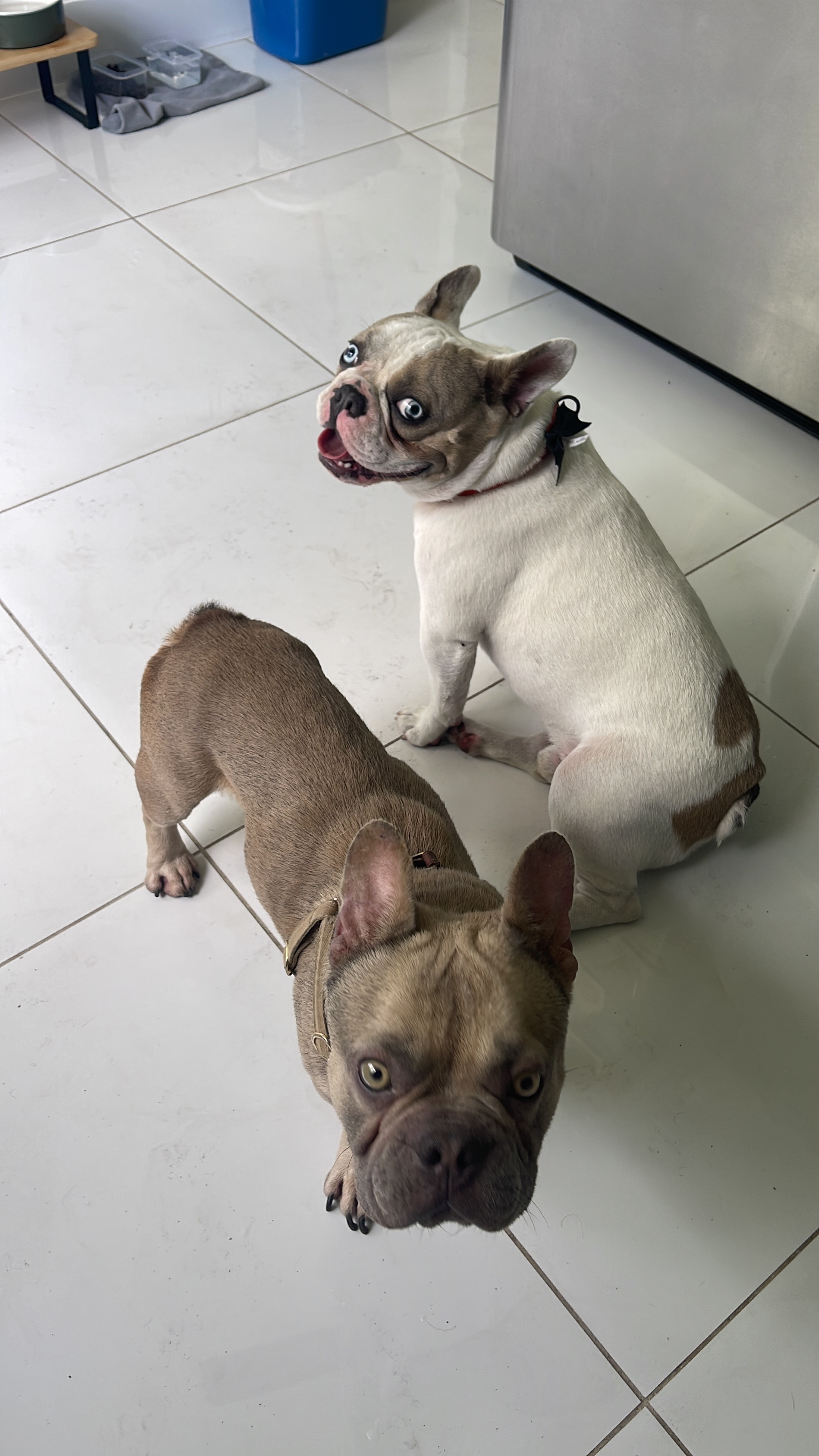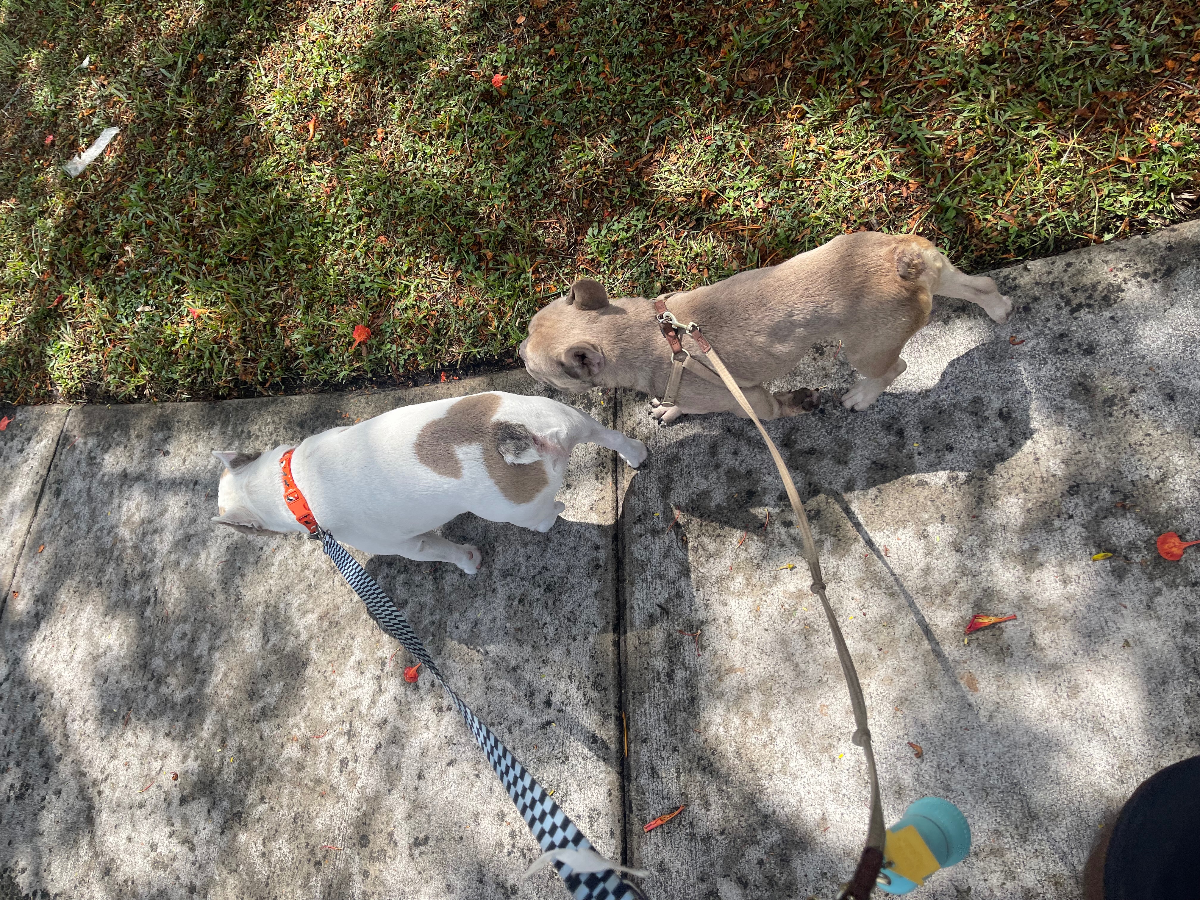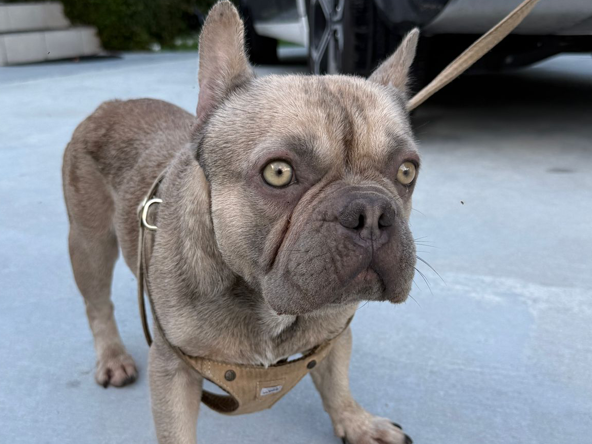 Bruno is also having ongoing vomiting and diarrhea, and to our shock, we found plastic in his vomit, which shows he may have been eating trash just to survive. He’s extremely underweight as you can see in the photo, compared to our other dog, he’s skin and bones.