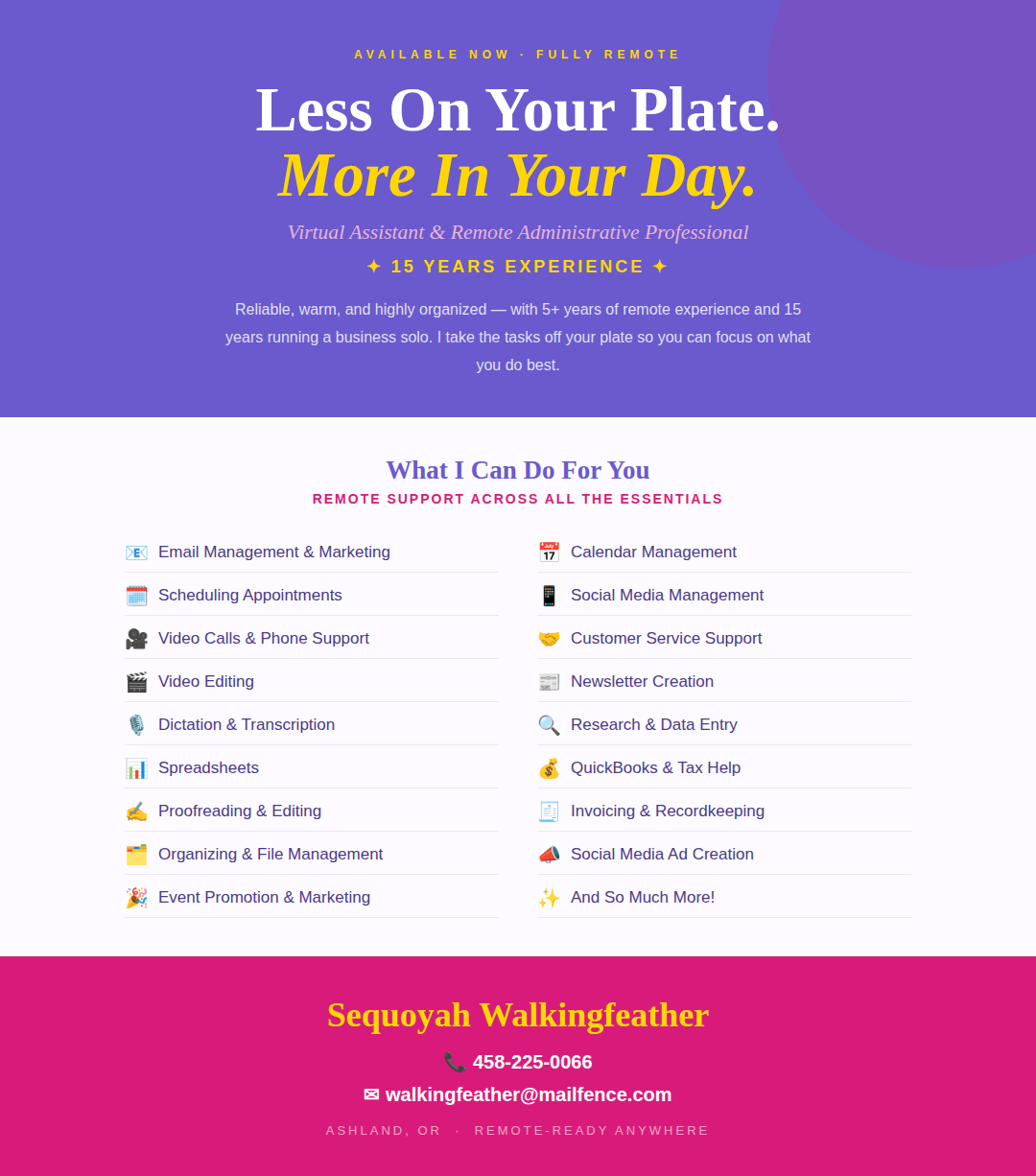 I've been going back and forth on how to transition into a different line of work, but now my body is telling me in no uncertain terms that I need time to rest and recover rather than continue to push through the pain. I'm not able to work in a traditional office setting due to my severe sensitivity to EMF radiation, and I've been actively searching for remote virtual assistant work that I can do from home on my own terms.