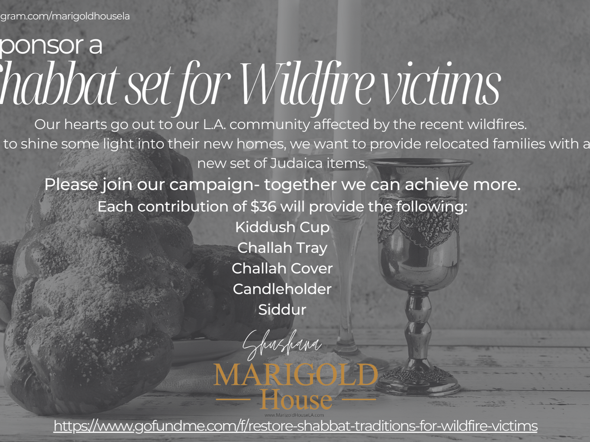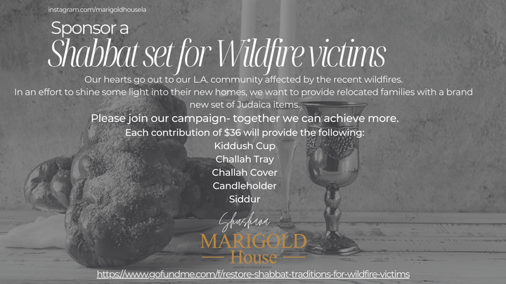 It's been a devastating time since the wildfires started, in Los Angeles. In an effort to shine some light into this dark time, Marigold House wants to help victims of the wildfires, to celebrate #shabbat the way they used to in their homes.