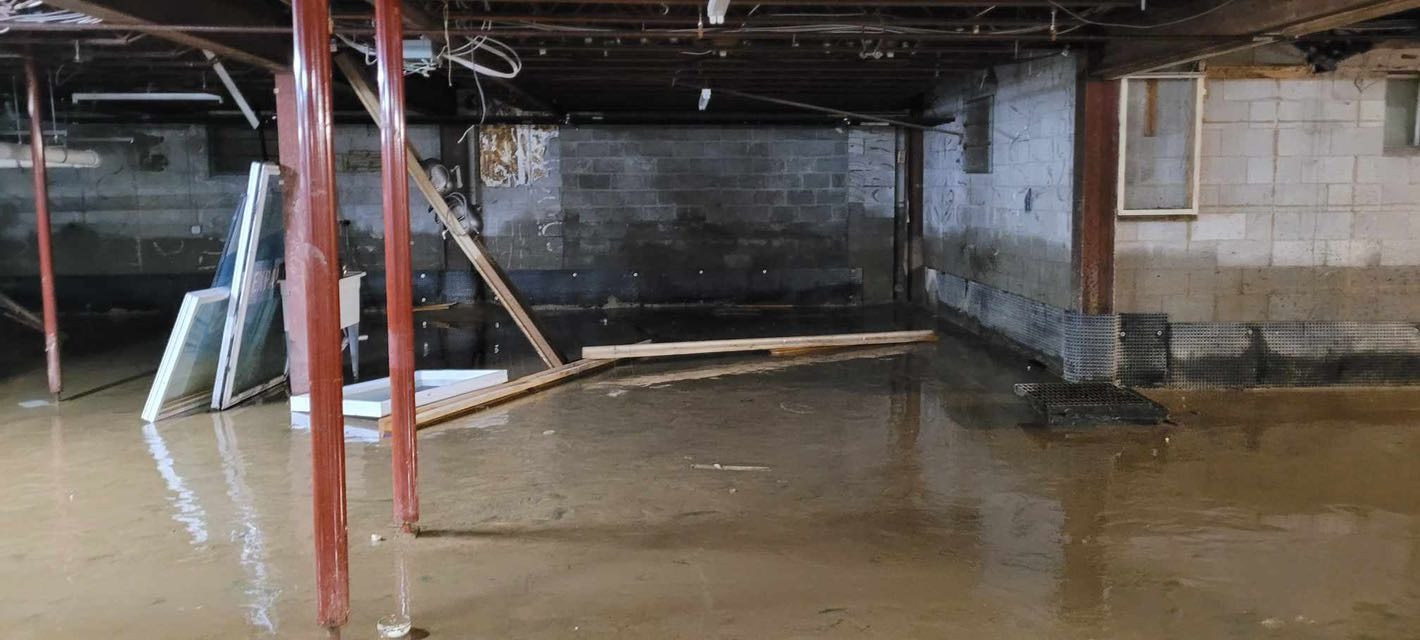 Most of our equipment and supplies were lost in the basement, and the flooring in the main studio was badly damaged.