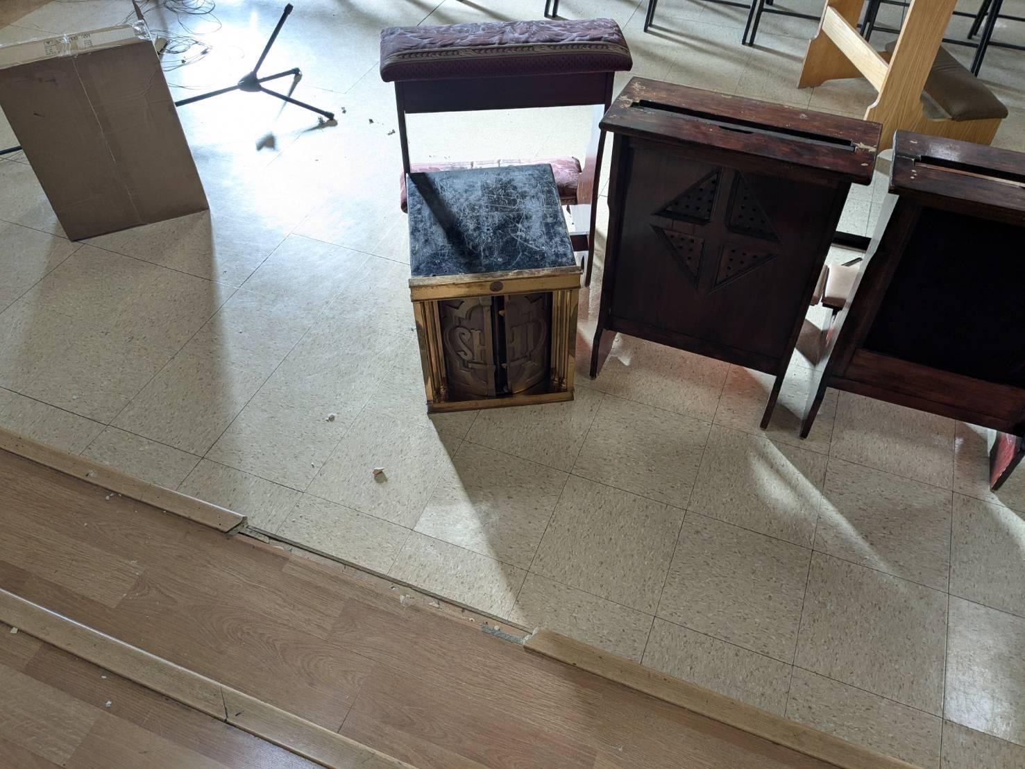 We are still waiting to hear if the perpetrators stole the blessed sacrament since interaction with the crime scene is forbidden until after Law Enforcement arrives.
