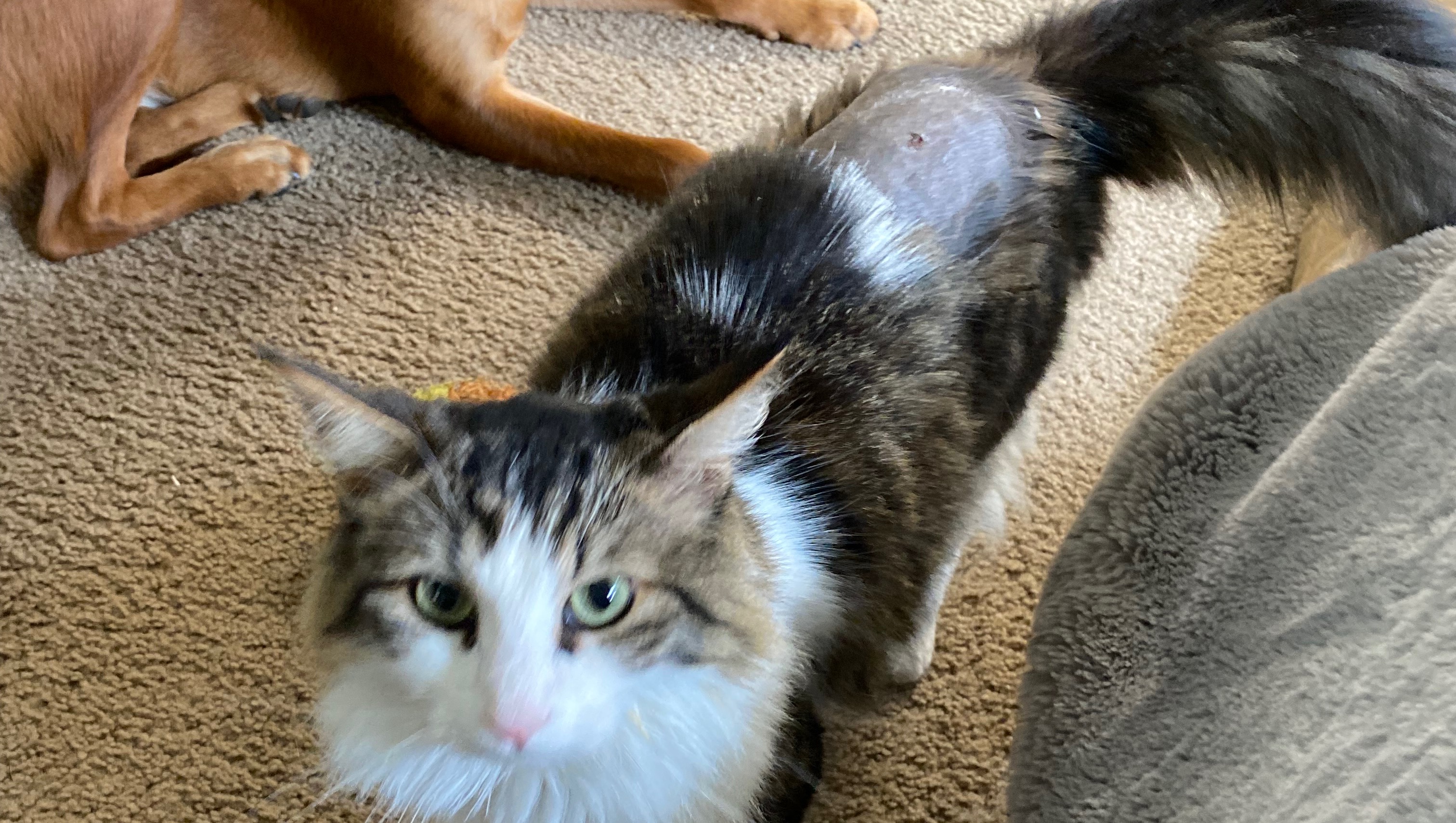 Hi, my name is Mariah. As many of you may have heard, my cat was shot with a pellet gun at our complex, Seabreeze Townhomes, off harbor and Wilson. The bullet, unfortunately, went through his body hitting his spine and lodged itself below the abdomen. Rexy had to get emergency surgery and almost died. We’re not sure if it’s just him healing, but he still can’t use his back right leg very well and we’re worried it’s because the bullet hit the spine. Regardless, he is on the mend and feeling much better, but our vet bill for everything was $3500. Please donate if you are able. Anything is appreciated. Thank you