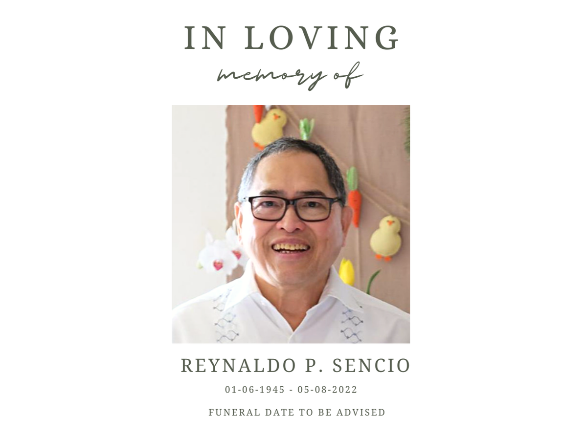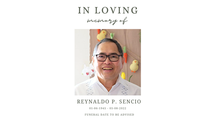 With sadness, our father, Reynaldo Sencio, has passed away, suddenly and tragically, in an automobile accident.