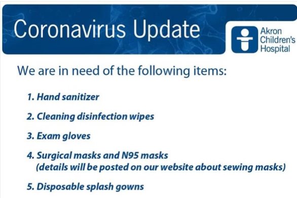 Our goal at the onset is to support our friends at Akron Children's Hospital who are in need of various items. Thanks to Shoppzon, we are able to source and provide the much needed 3M N95-rated respirator masks. With your support, we can increase the quantity of masks that we are able to provide, with the hope of increasing our reach to include other items of need, such as; hand sanitizer, cleaning disinfection wipes, exam gloves and disposable gowns.