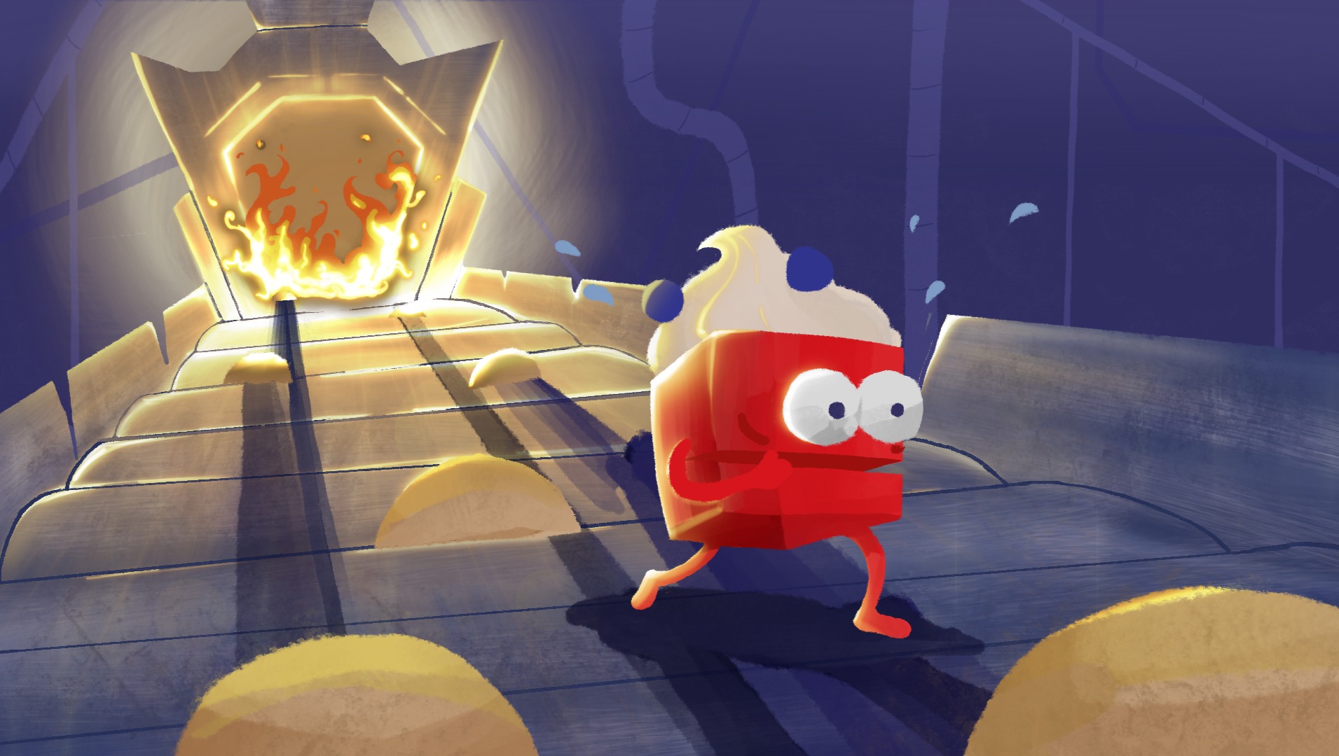 Set in a massive futuristic food factory, Tippy Topper follows our protagonist Philip, a fledgling Jello obsessed with keeping his toppings in perfect condition, often at the expense of his own safety. When he gets a little too curious about his surroundings, his obsession sends him on the adventure of a lifetime.