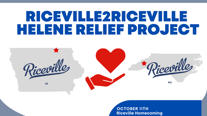 Our story: In the act of compassion, we invite you to participate in the Riceville, IA to Riceville, NC Helene Relief Project (Riceville2Riceville). We have all witnessed the generosity of the Riceville community and their willingness to give. It is with that in mind that we are "adopting" the community of Riceville, NC.