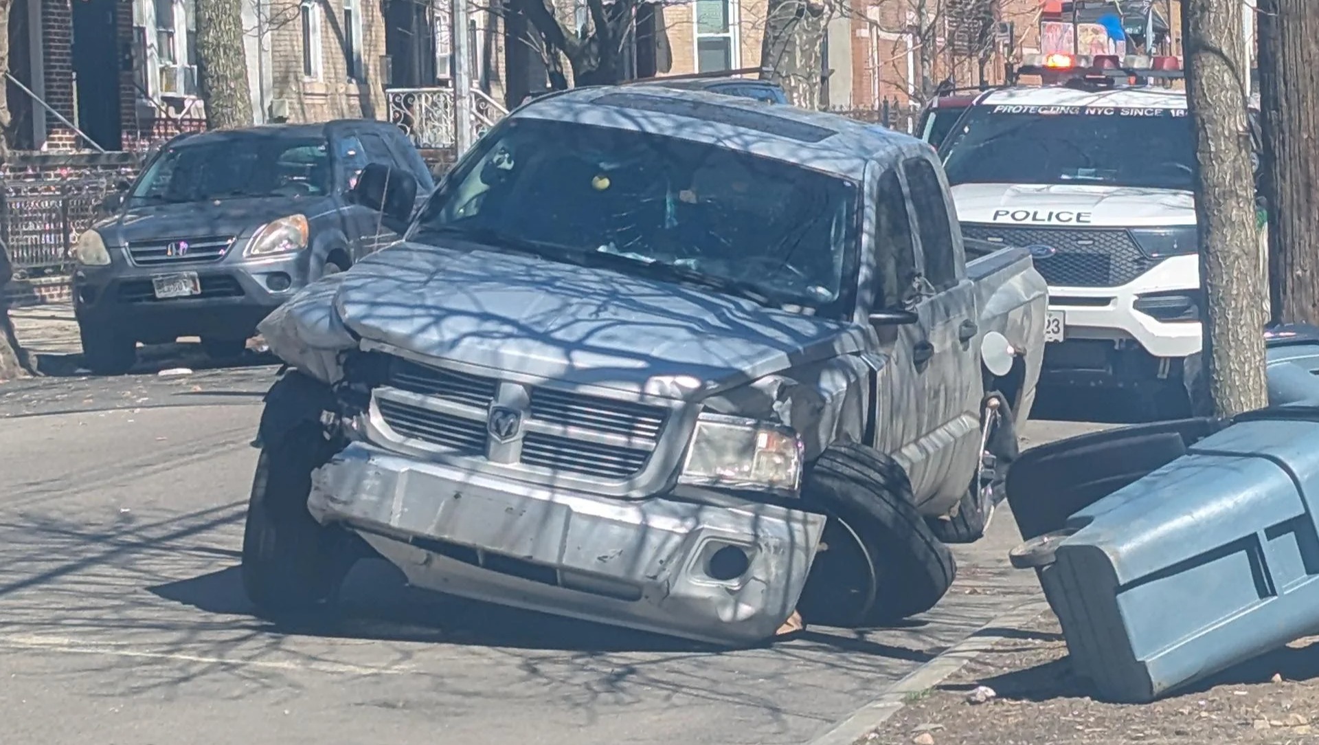 Reddit Thread on accident and photos: 1) Michael's car where he was pinned, 2) Driver's truck abandoned a few streets over