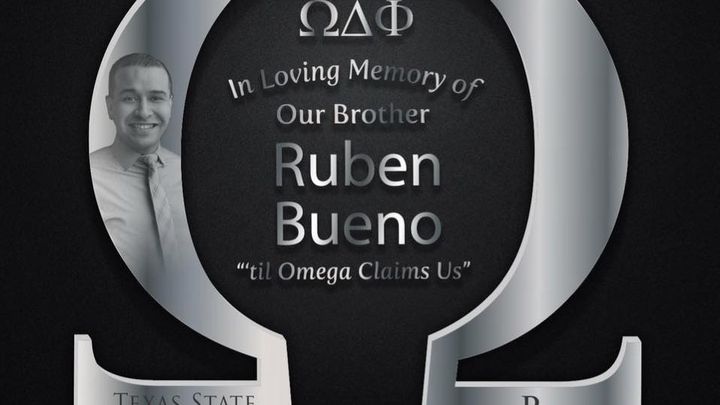 It is with a heavy heart we say goodbye to a loving husband, son, brother, and friend. Ruben Bueno touched the lives of many with his infectious smile and a huge heart. Ruben was always the life of the party and strived for greatness in everything he did. For those who knew him knew he lived by the quote, "If you're not getting better, you're getting worse". He lived by this motto always and empowered others to do the same. As a member of the Omega Delta Phi fraternity at Texas State University, Ruben strongly impacted the lives of his fellow bRhotherhood.