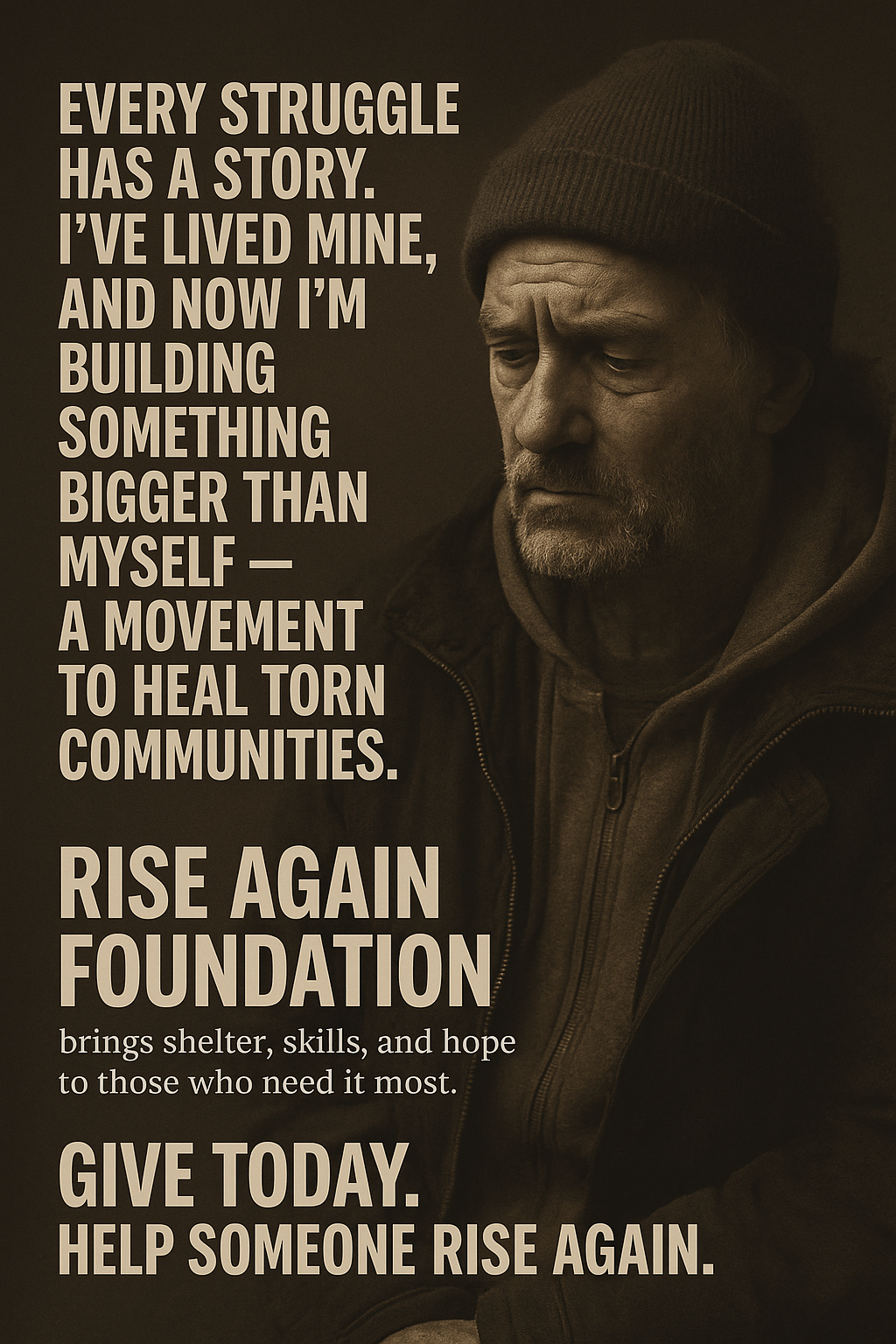 At Rise Again Foundation, we believe in second chances. We are building a movement to uplift those facing homelessness, disabilities, unemployment, and financial hardship. Through compassion, community action, and empowerment, we give people the tools and hope to rebuild their lives.