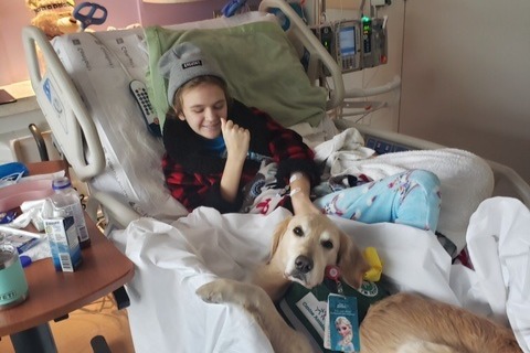 The past few months have been a rollercoaster for Rilynn and her twin sister, Adilynn; mom, Kara; and dad, Tom. Just before the holidays, Rilynn felt some unusual pain in her legs. Rilynn’s pediatrician sent her for an MRI. Not good news—and certainly not the guitar she was hoping to receive for Christmas. The MRI revealed a tumor that required immediate removal. She underwent emergency surgery on December 20, and her recovery went well. Rilynn left the hospital in time to spend Christmas Eve with her family, her dogs (Gracie and Aqueela), and a brand-new guitar.