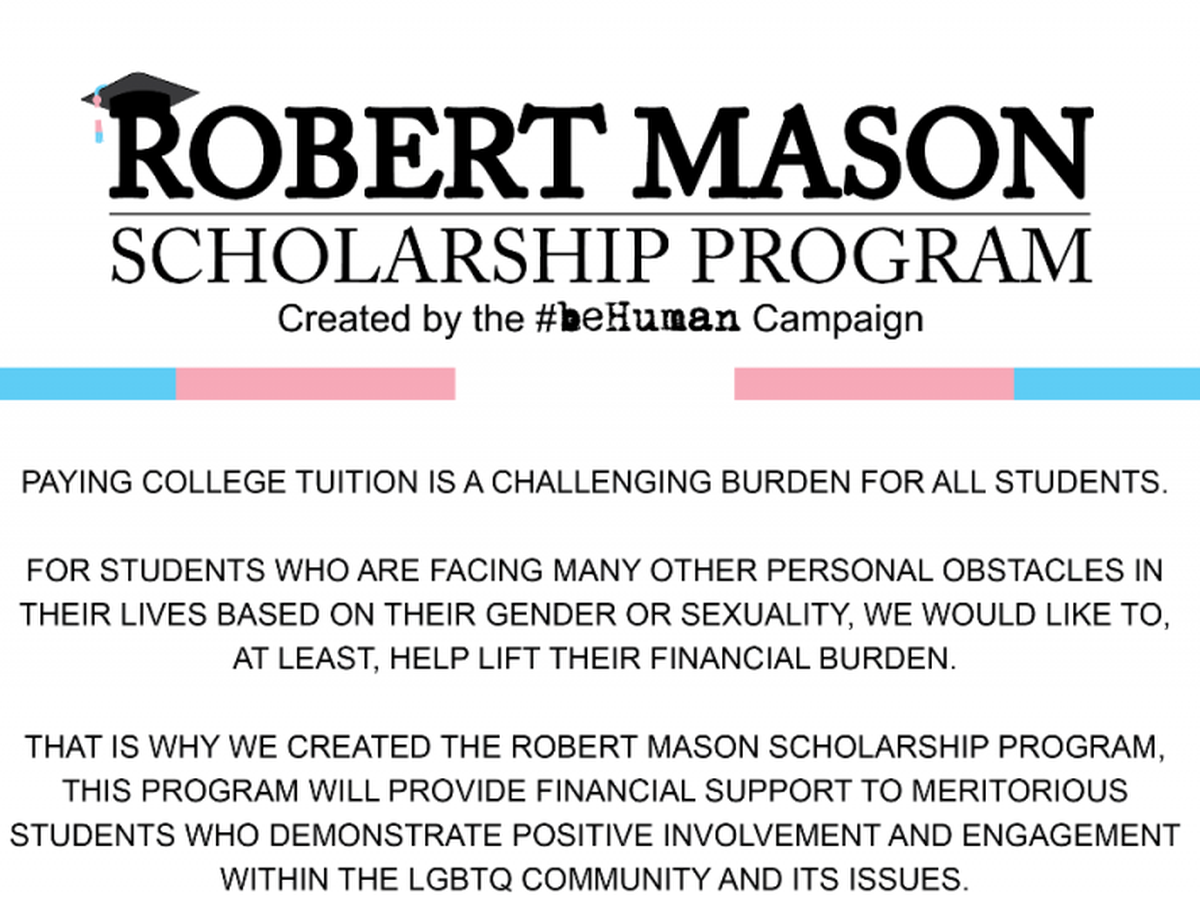 Something I have been working on since Mason graduated high school. As I sat there watching all the seniors receive their scholarships, I thought to myself "We should have one too for our community...for our LGBT students especially for our transgender kids." That has been on my mind for the past 2 years. Now that we have progressed as an organization, its finally becoming a reality.