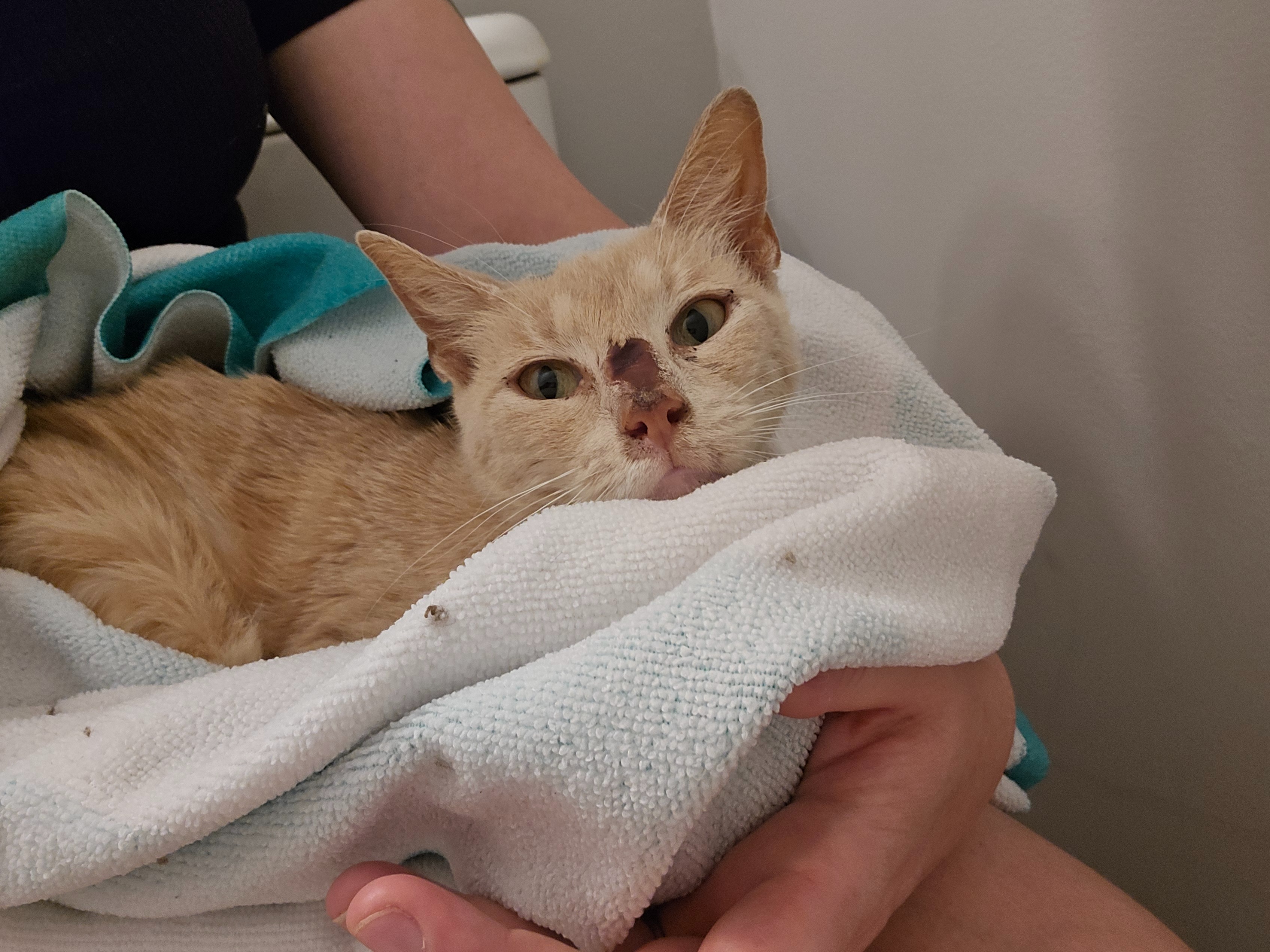 My 16-year-old recently rescued this cat from the side of the road where she was dumped far away from any houses or shelter.