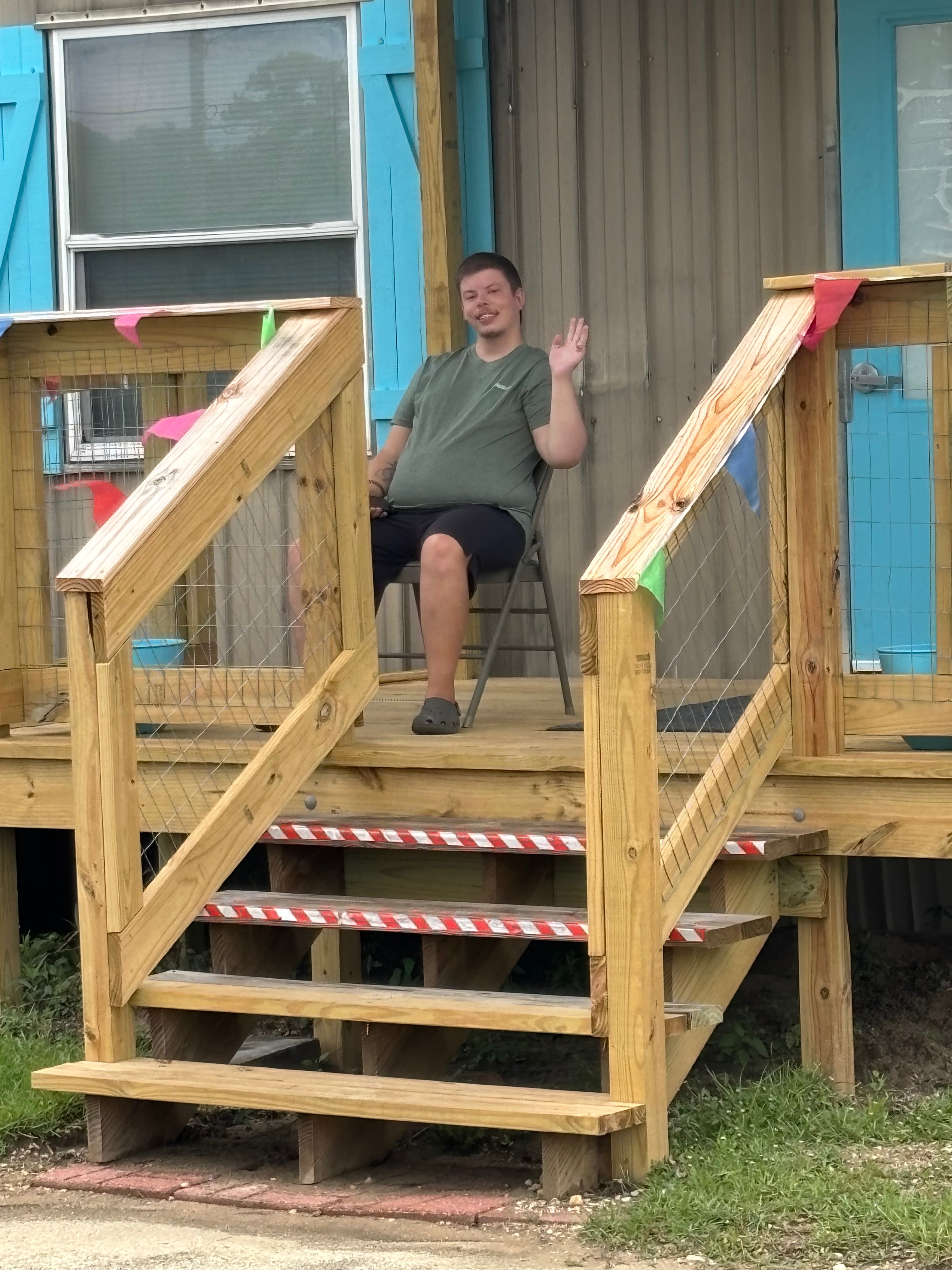 Weylin is a humble, faithful man who ministers to everyone he encounters just by being himself. Rain or shine, he’s there—rocking, praying, and spreading peace. We’d love to make that time a little more comfortable for him with a sturdy rocking chair and a padded cushion.
