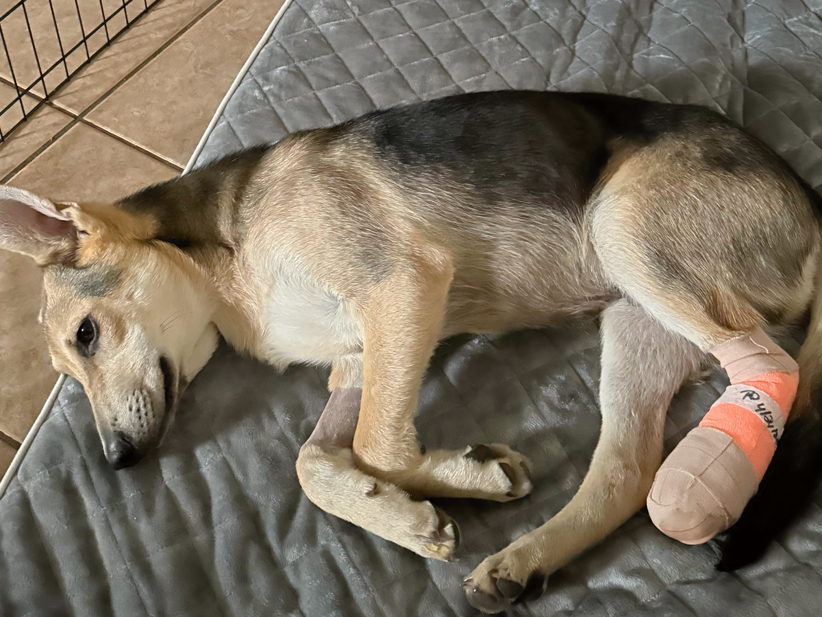My morning started off normal, saying hello to all of the random humans who come into our ranch in their big trucks to work. I happened to get really curious and excited that morning. I ended up going under a moving truck, and my left back leg was run over. Unfortunately, the damage is too much, and the doctors can't save my leg. We tried to do treatments on it, which didn't feel so good, but the infection has gotten worse.