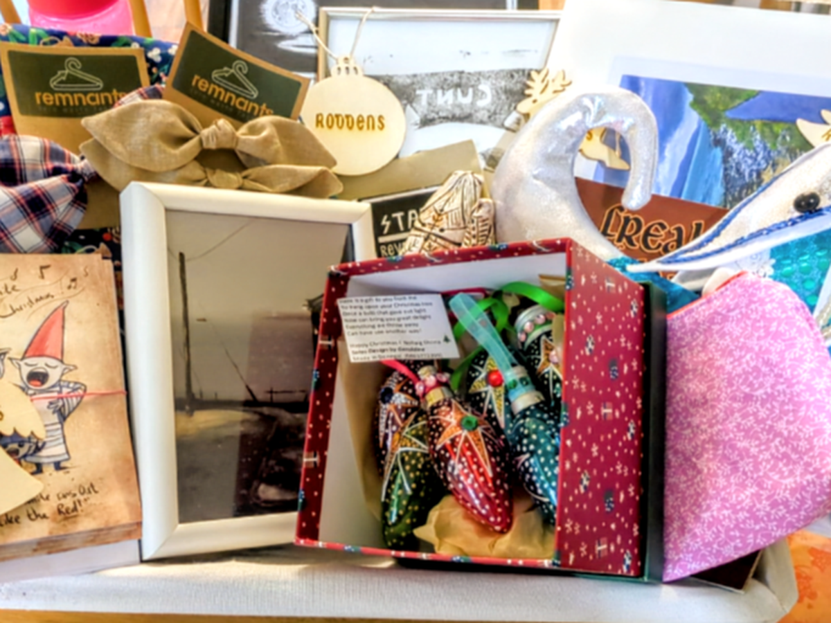 Hi folks, we are a local collective of Artists and crafters. This year we have each donated an item of personally made art or craft to a a Christmas hamper.