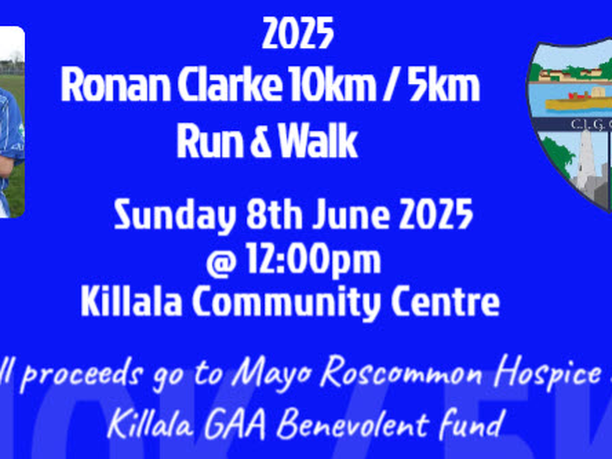 This years event will take place on Sunday 8th June 2025 with registration commencing at 10:30am and the race commencing at 12pm from Killala Community centre. This year, 2025 Mid West Radio's Gerry Glennon will be in attendance as our guest of honour.