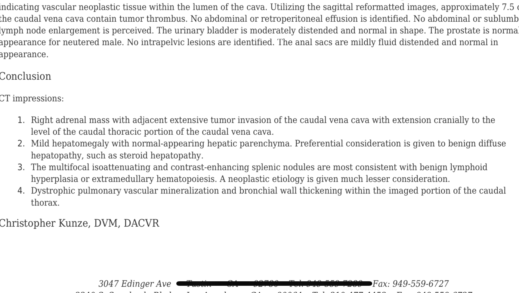 After seeking a second opinion it was suggested that Roscoe undergo x-rays and an ultrasound. The ultrasound revealed that Roscoe had developed a 1.6 cm tumor on his right adrenal gland with suspected invasion of his caudal vena cava. The CVC is a major vein in the body if not the largest. After referring to a surgical specialist who then referred us to an imaging center for a CT scan, we found out that the tumor had major invasion of the CVC. The tumor also has resulted to be a pheochromocytoma. It is one of the rarest tumors, only 1-2% of tumors are pheochromocytoma. At this time it does not appear to be cancerous as it has not metastasized.
