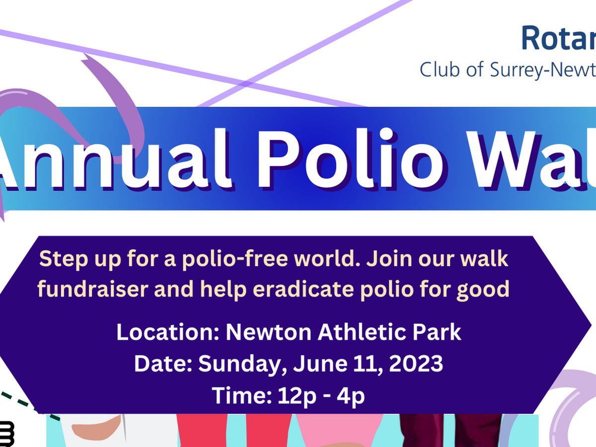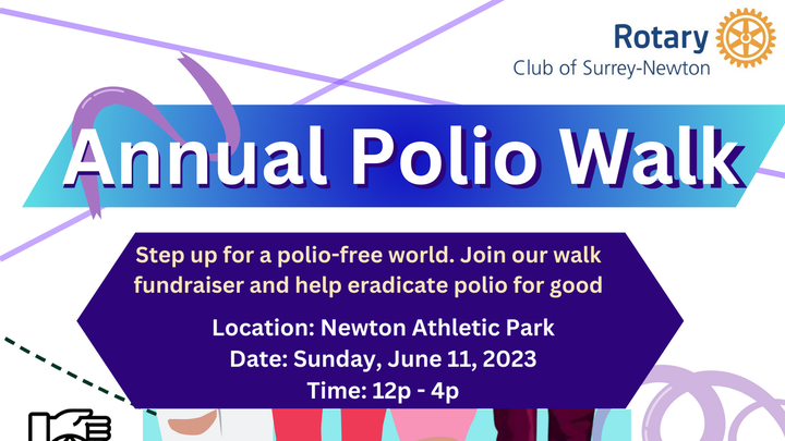 I hope this message finds you well. I wanted to reach out and invite you to join us for the Annual Polio Walk on June 11, 2023, from 12:00 pm to 4:00 pm at Newton Athletic Park. Together, let's take steps toward a polio-free world!