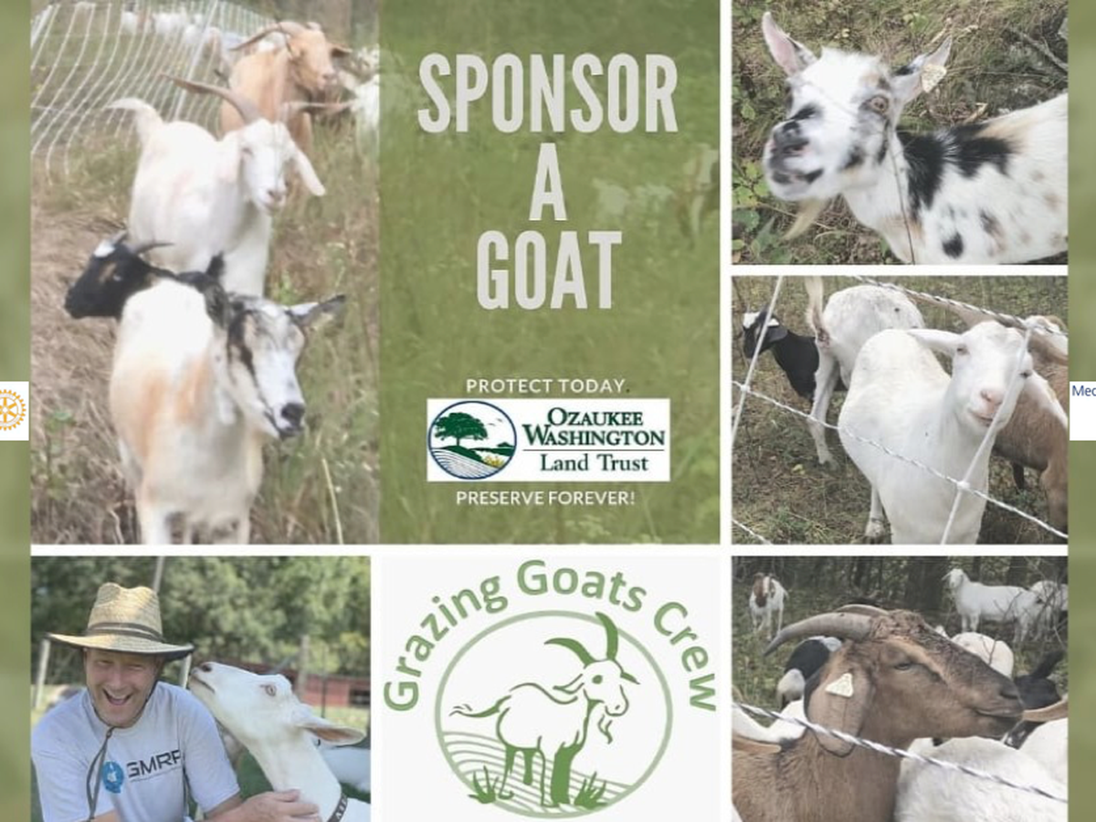 Pukaite Woods at Rotary Park has been trimmed by an unlikely landscaping crew since 2020: a herd of goats! Now the Mequon-Thiensville (M-T) Sunrise Rotary Club is seeking public help to bring the goats back to continue the woodland restoration.